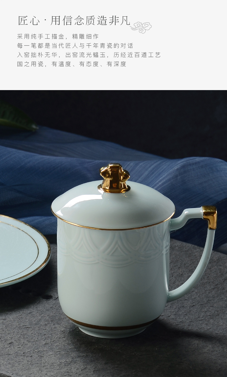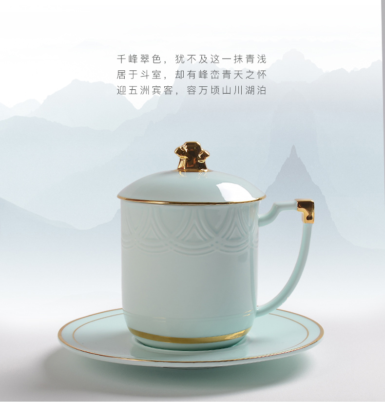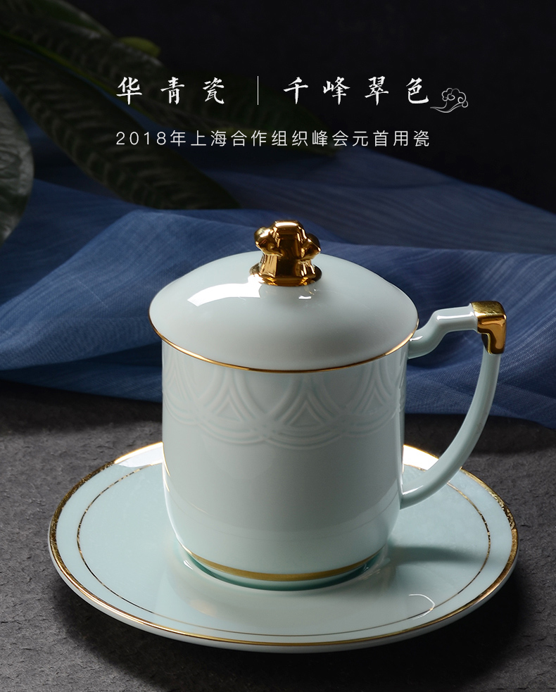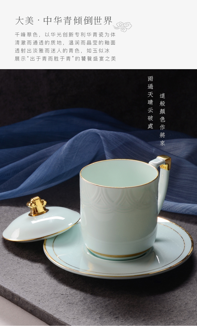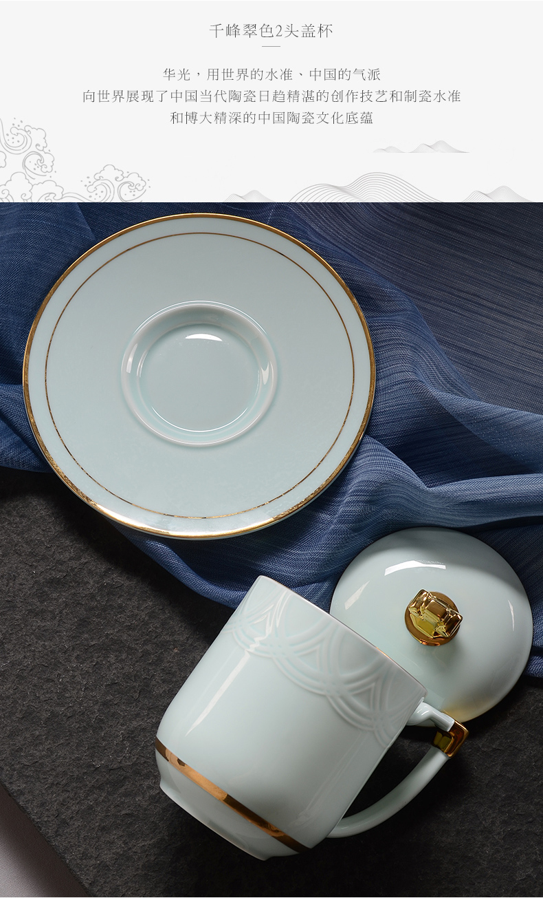 Huaguang Porcelain Celadon Conference Cup Office Cup Water Cup with Cover Business Cup Gift Box High-End Upper-End Cup 中文版