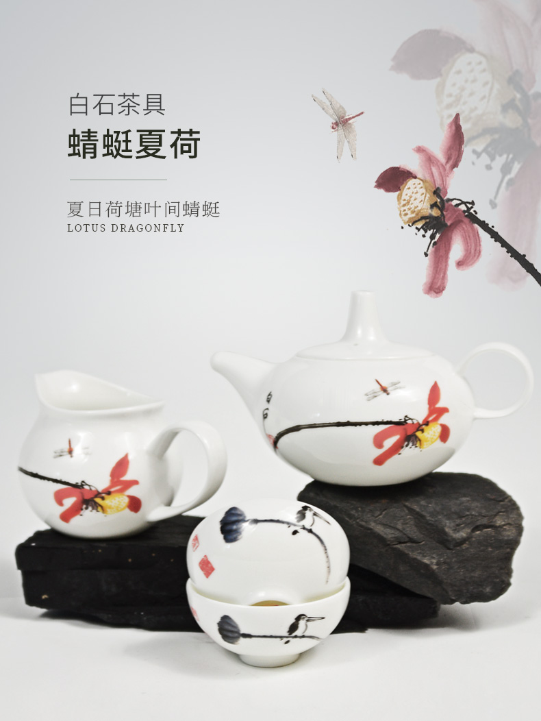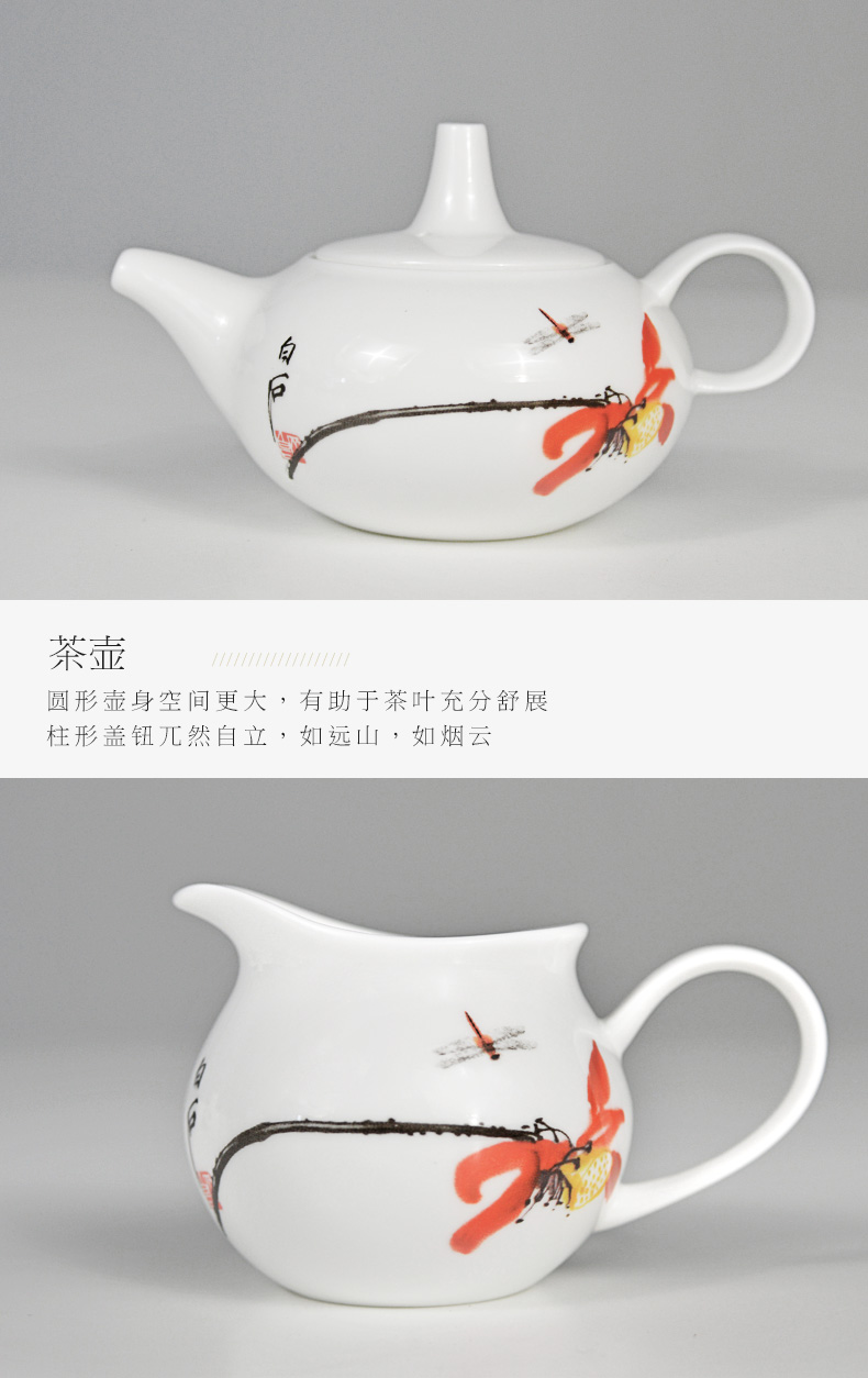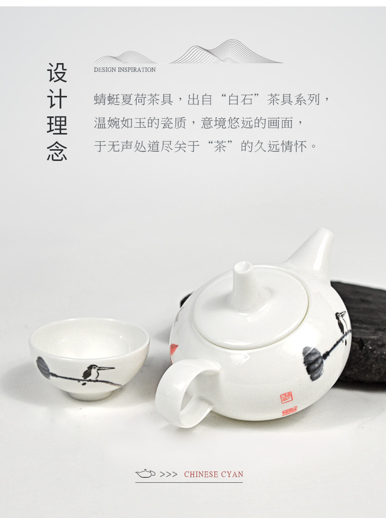 Huaguang National Porcelain Bone China Tea Set Kung Fu Tea Set Set Chinese Household Tea Set Living Room Simple Dragonfly Summer Lotus