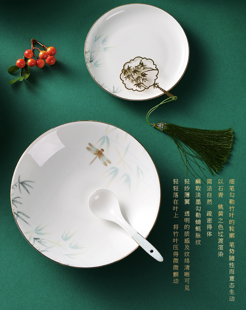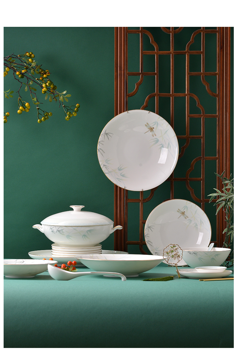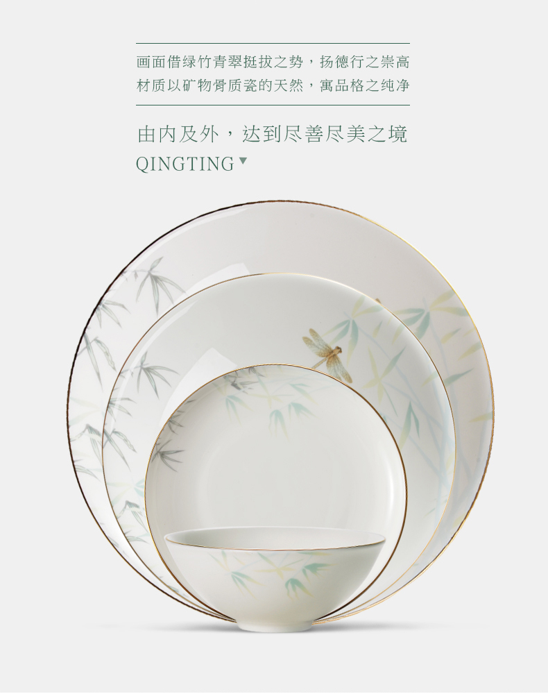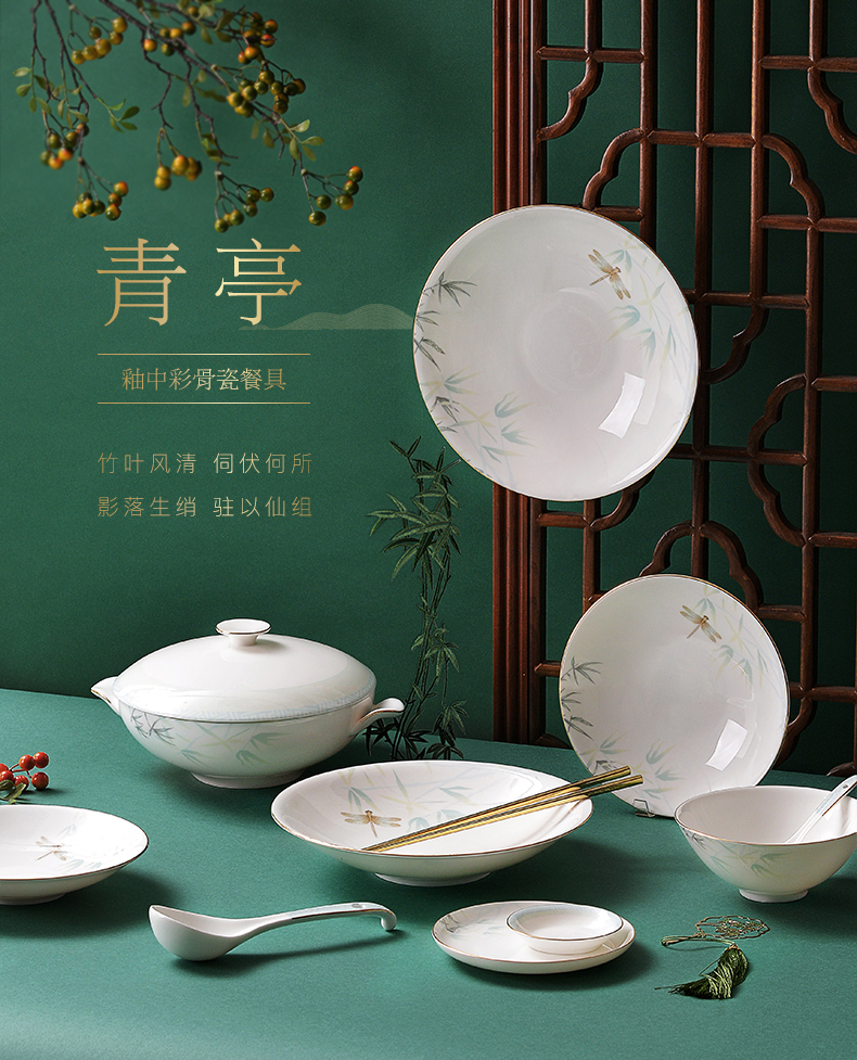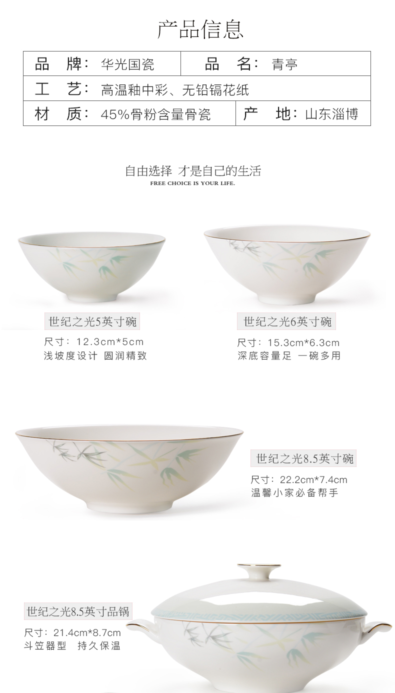 Huaguang Ceramic Bone China Bowl and Dish Set Household Bowl Plate Dish Item Chinese Bone China Tableware Qingting 中文版
