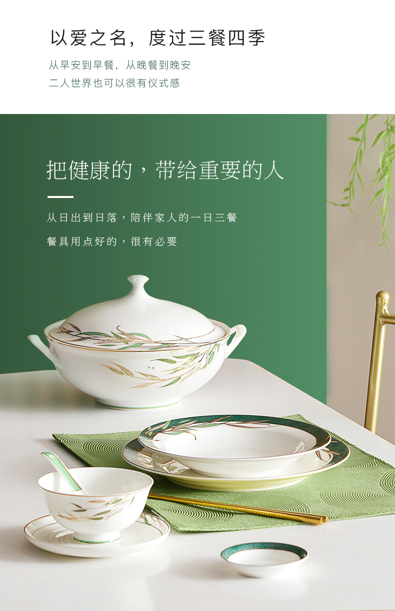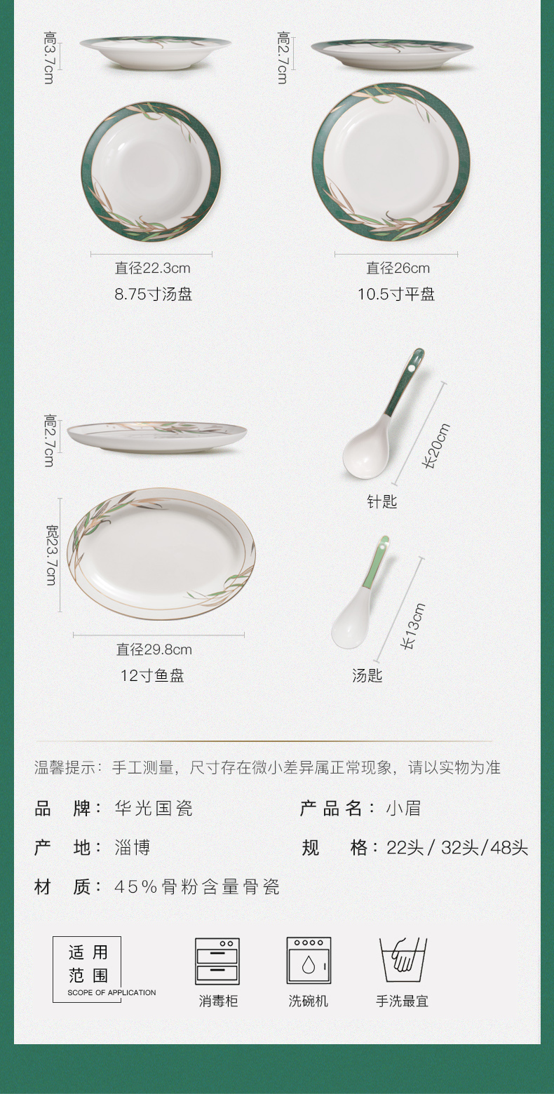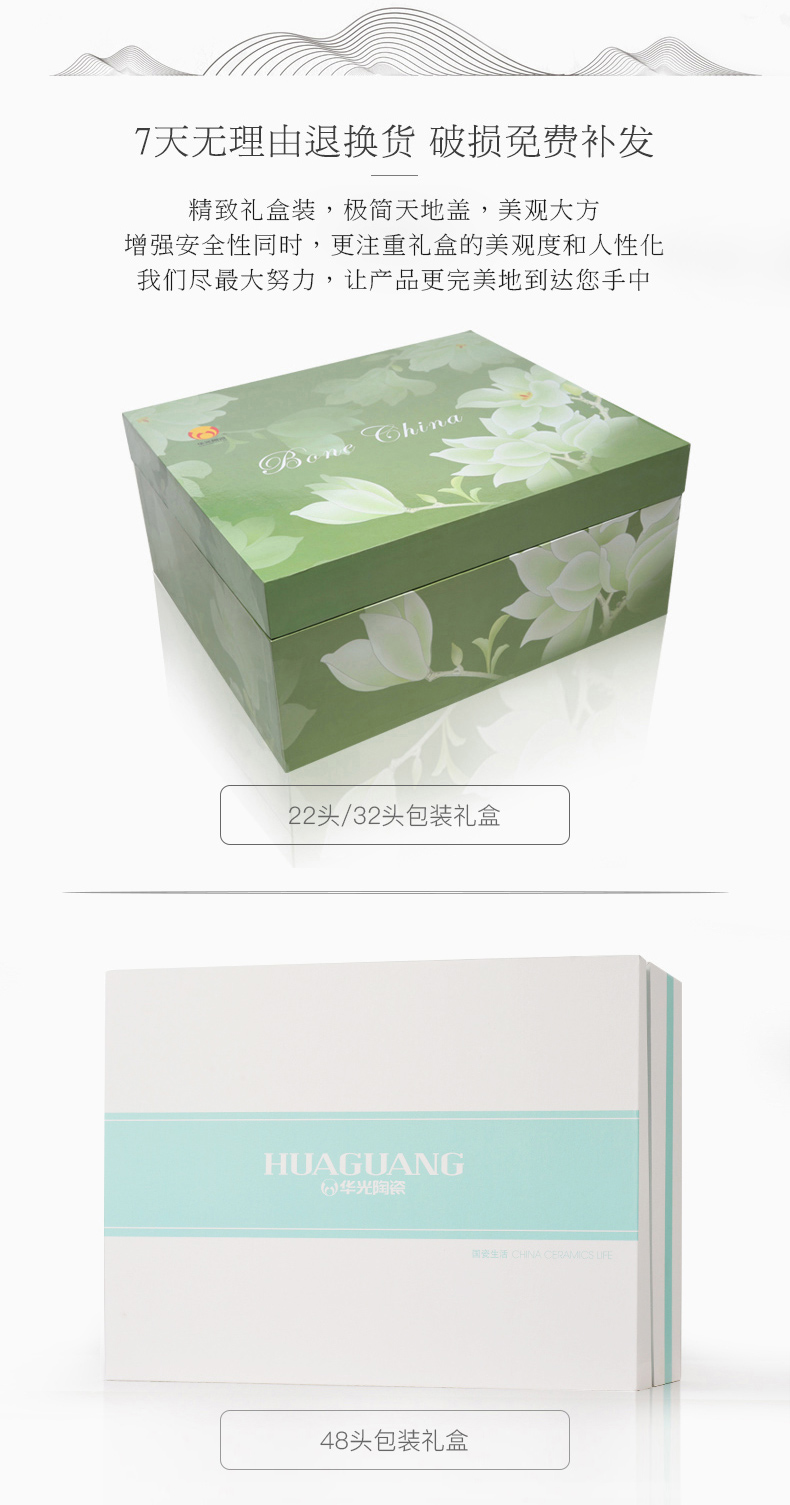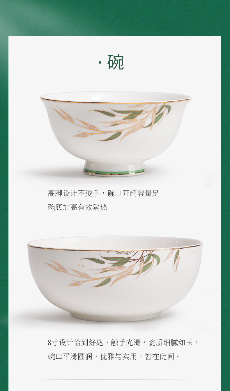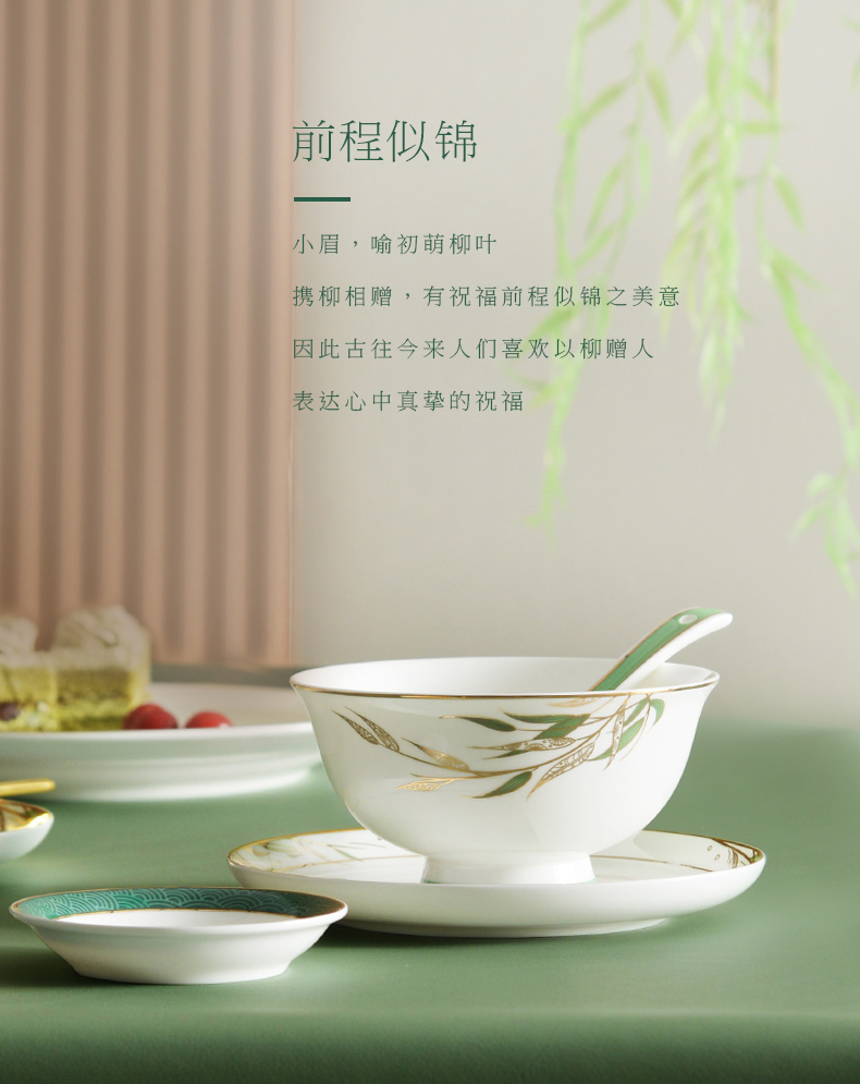 Huaguang National Porcelain Bone China Tableware Suit High-Leg Anti-Scald Bowl and Dish Set Bowl Dish Plate Combination Gift Box with Bright Future 中文版