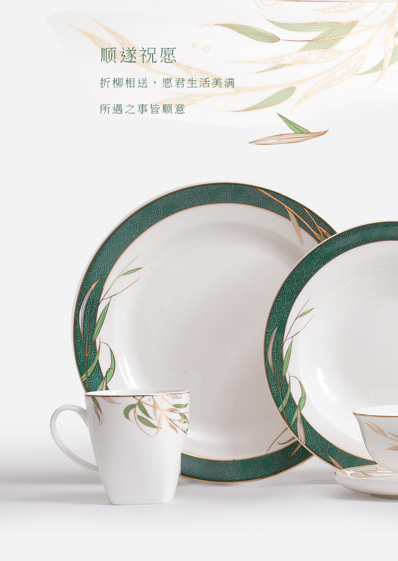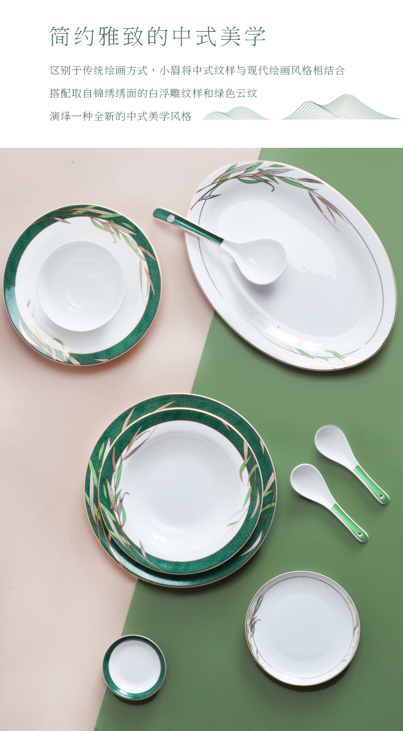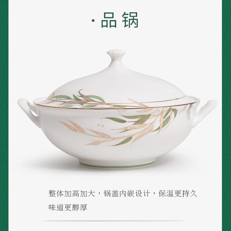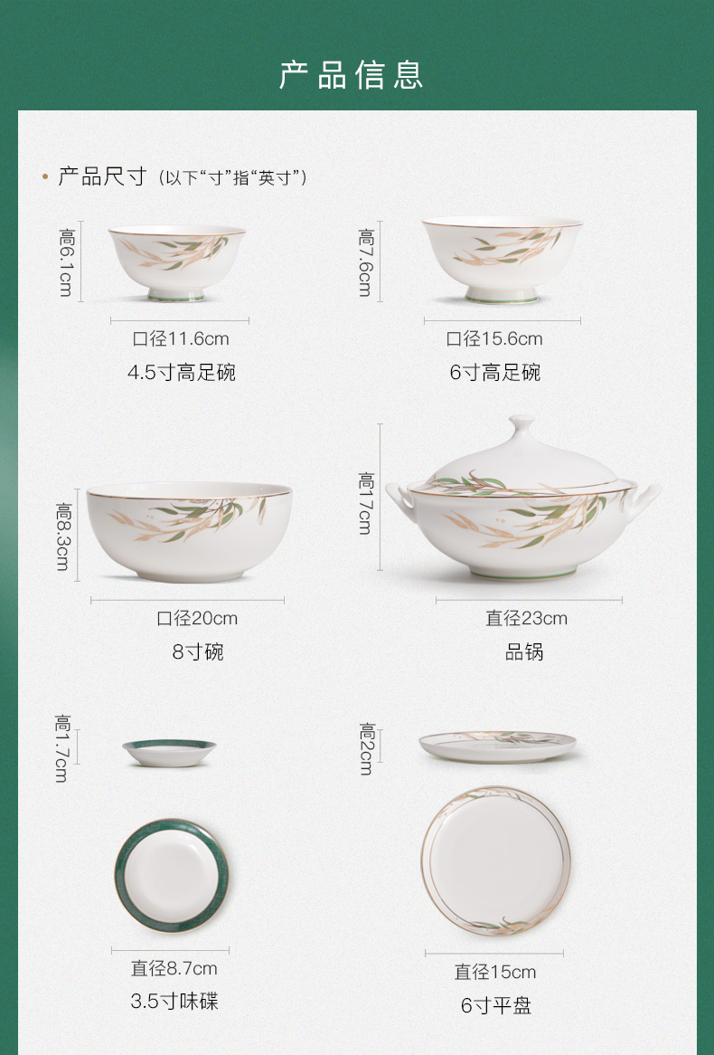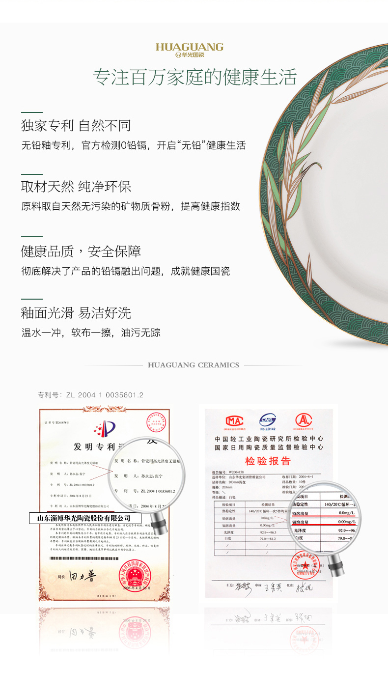 Huaguang National Porcelain Bone China Tableware Suit High-Leg Anti-Scald Bowl and Dish Set Bowl Dish Plate Combination Gift Box with Bright Future 中文版