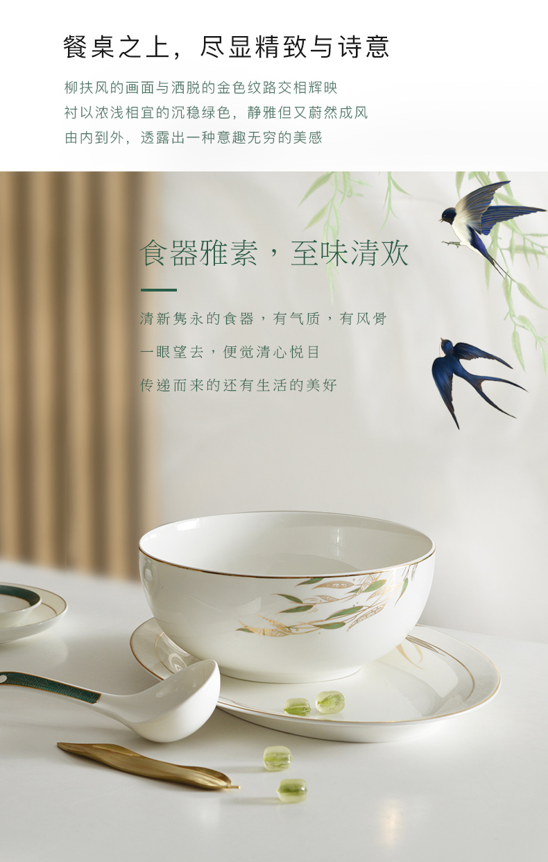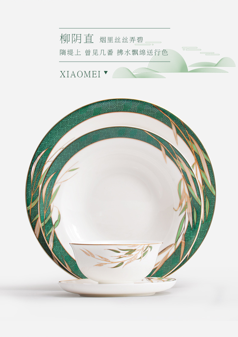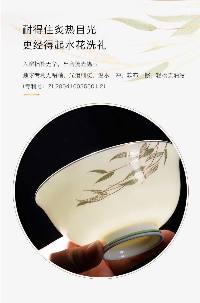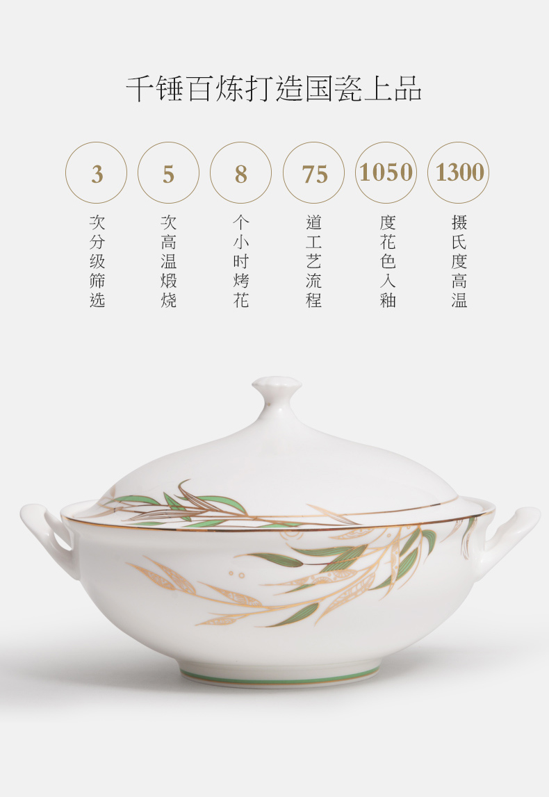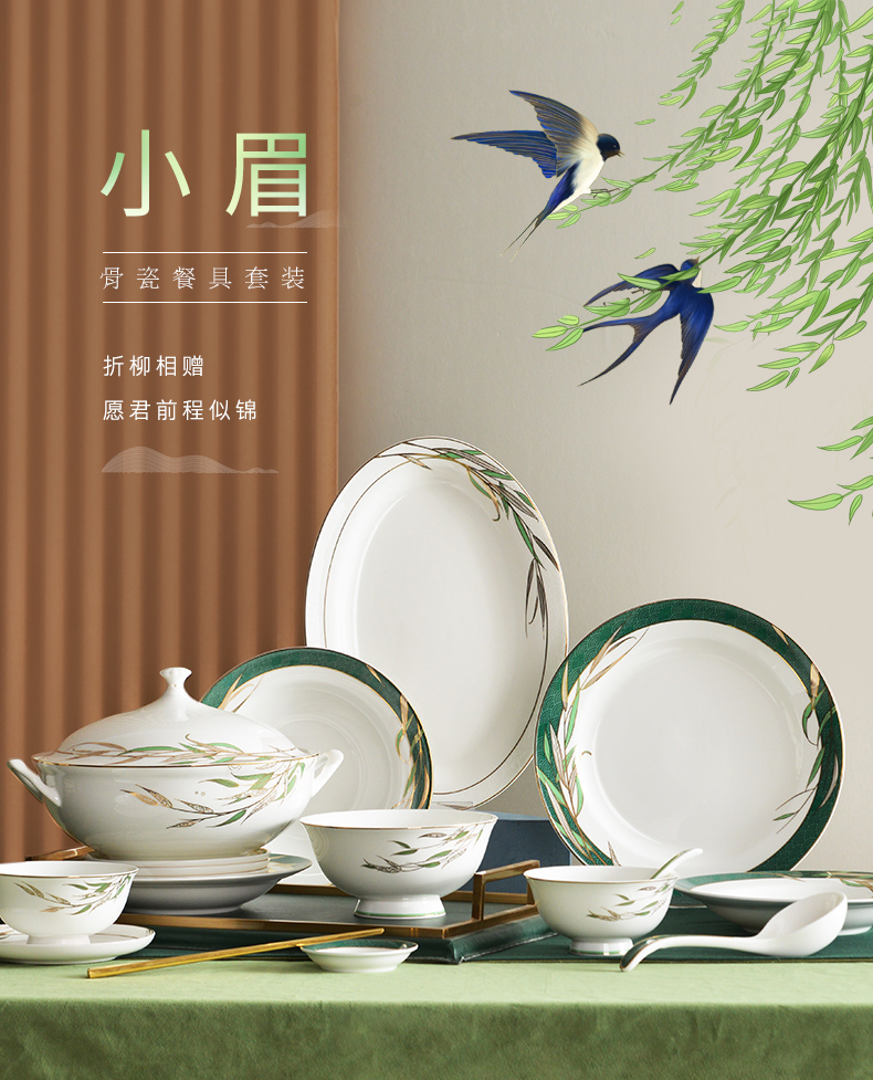 Huaguang National Porcelain Bone China Tableware Suit High-Leg Anti-Scald Bowl and Dish Set Bowl Dish Plate Combination Gift Box with Bright Future 中文版