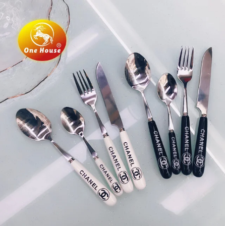 Crystal Factory Direct Sales Porcelain Handle Stainless Steel Tableware 中文版