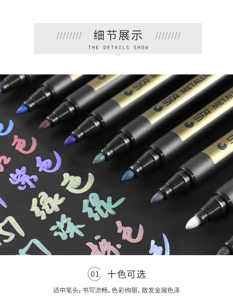 STA 10 Colors Metal Marker Pen Painting Pen DIY Album Hand Account Writing Pen Water-Based Odorless 中文版
