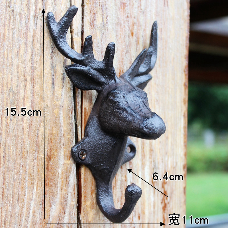 european and american retro cast iron hook coat and cap hook antlers deer head single hook wall hanging decoration mural wall decoration hook 中文版