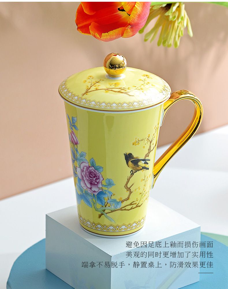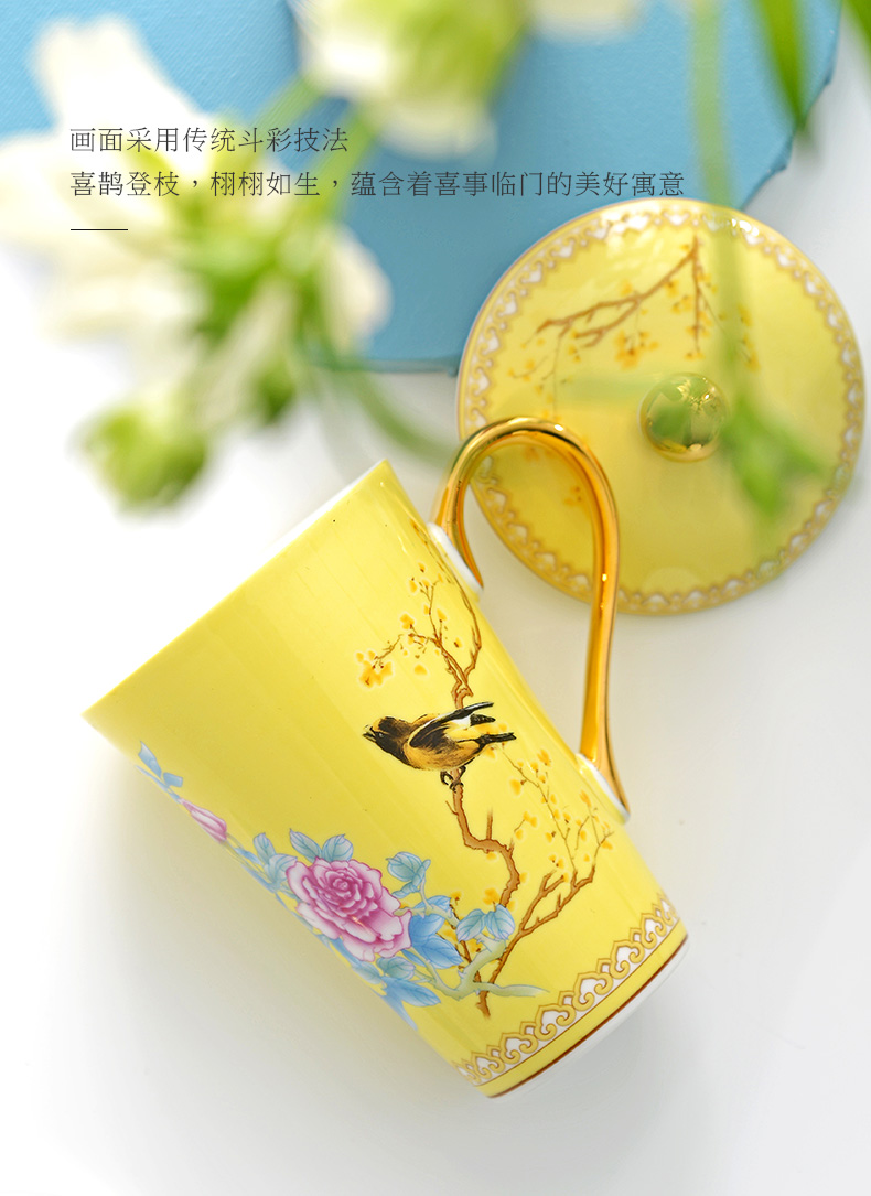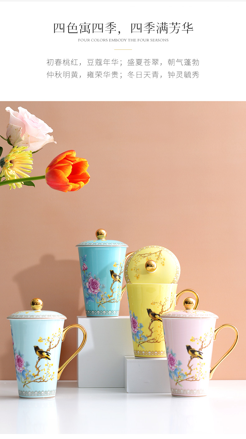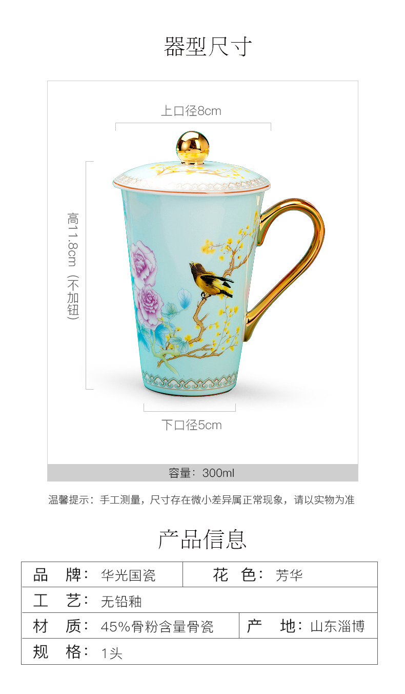 Huaguang Porcelain Ceramic Water Cup Cup with Cover Mug Large Capacity Bone-China Cup Ziying Straight Cup Goddess Cup