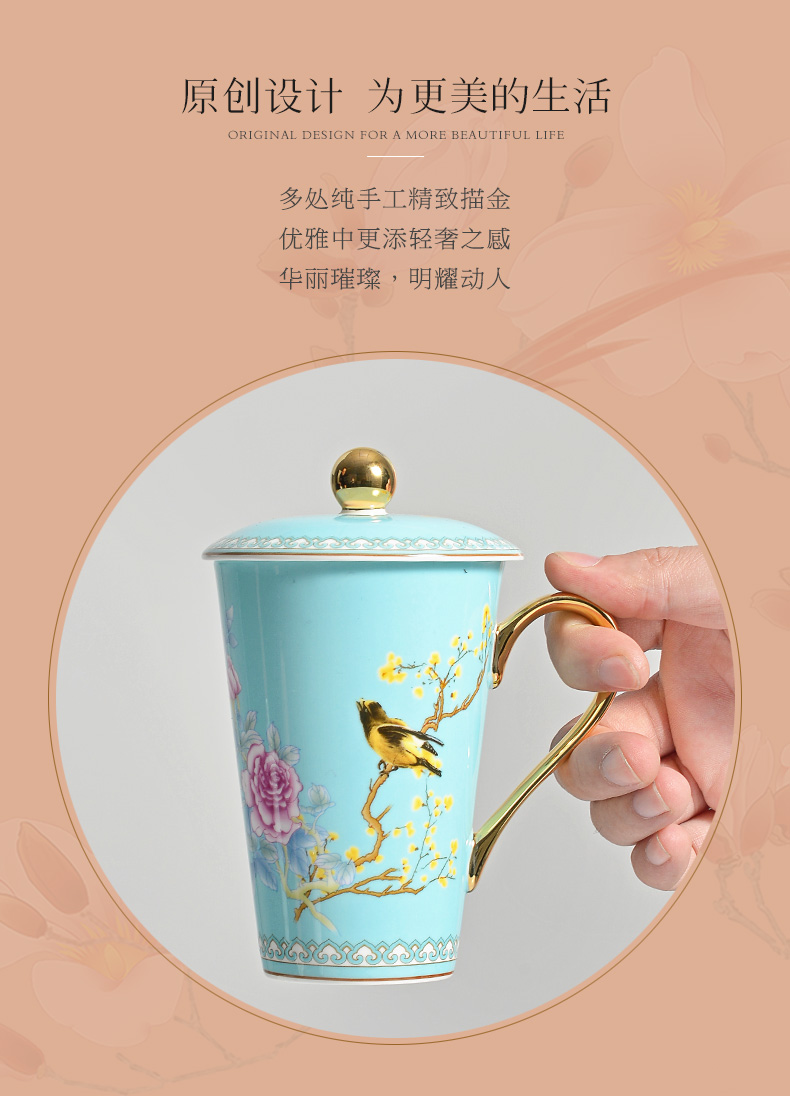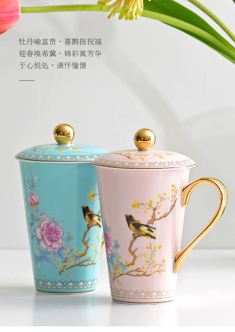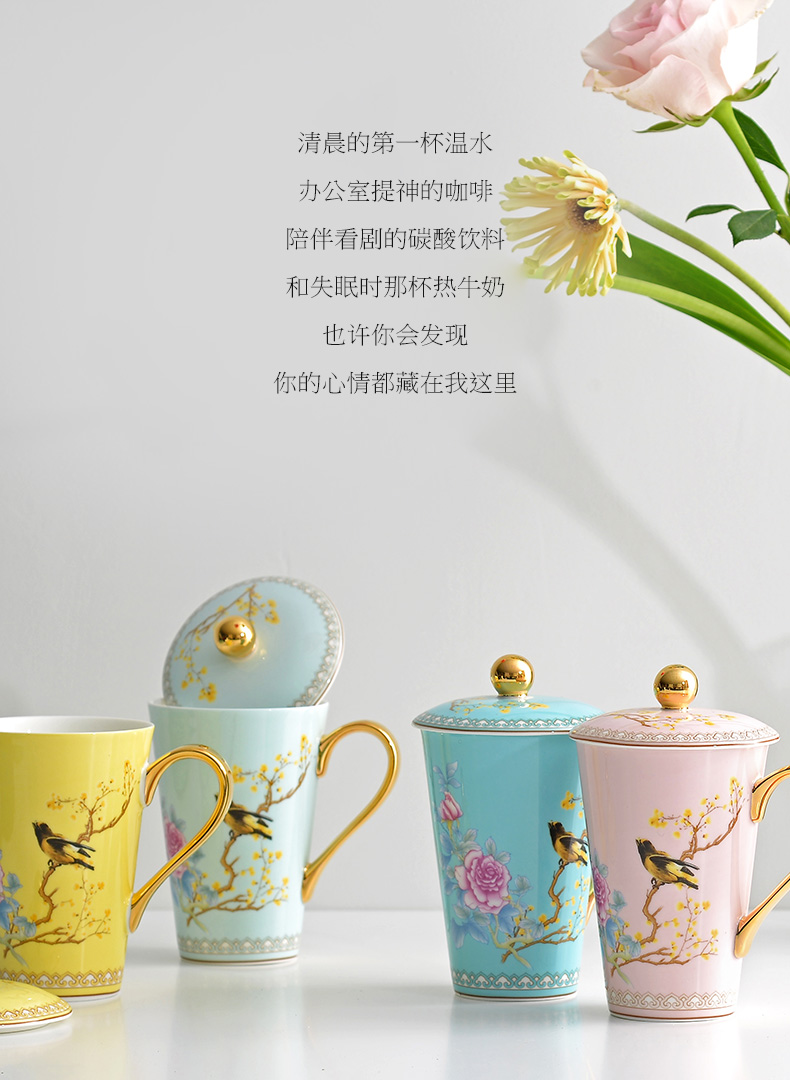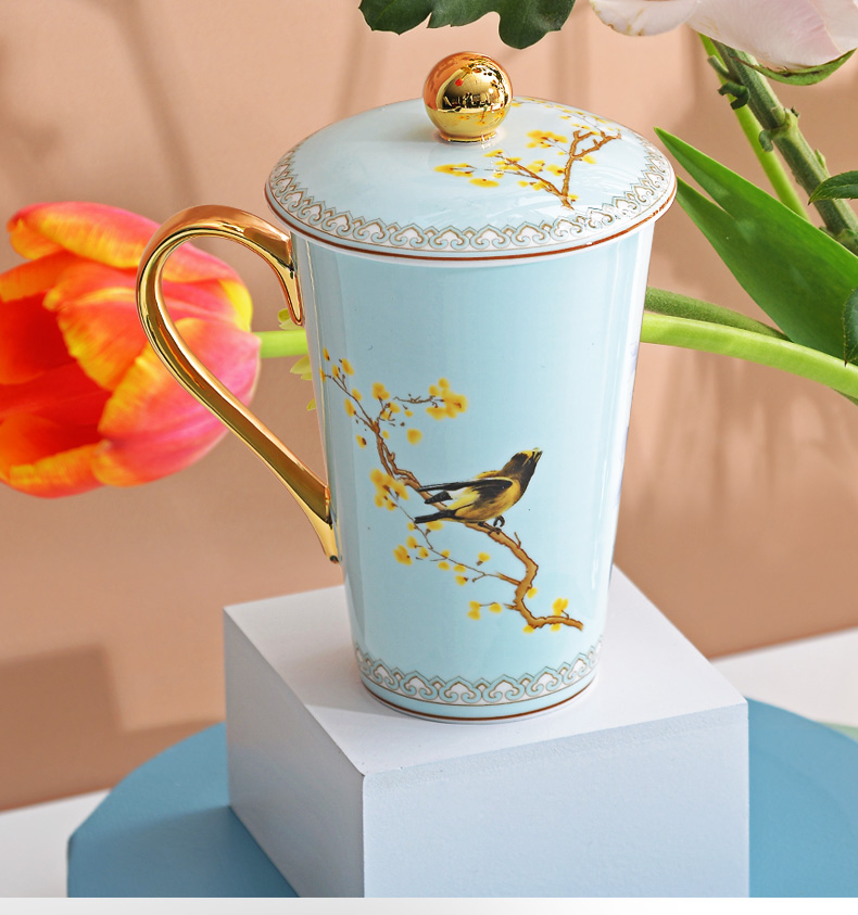 Huaguang Porcelain Ceramic Water Cup Cup with Cover Mug Large Capacity Bone-China Cup Ziying Straight Cup Goddess Cup
