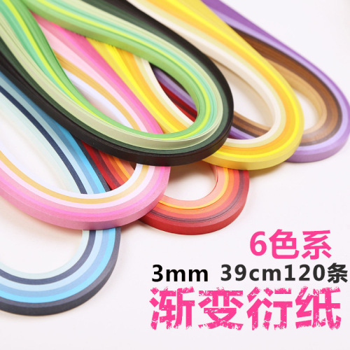 渐变色系6色系衍纸 每包6种颜色(渐变绿、渐变红、渐变蓝、渐变紫、渐变黄、渐变粉)一个色系一包6个颜色组成,每包120条。宽3mm长度39cm。亲可以选择合适的宽度。