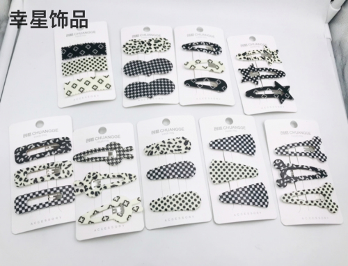 black and white leopard print polka dot striped plaid acrylic bb clip printing style hairpin clip side clip