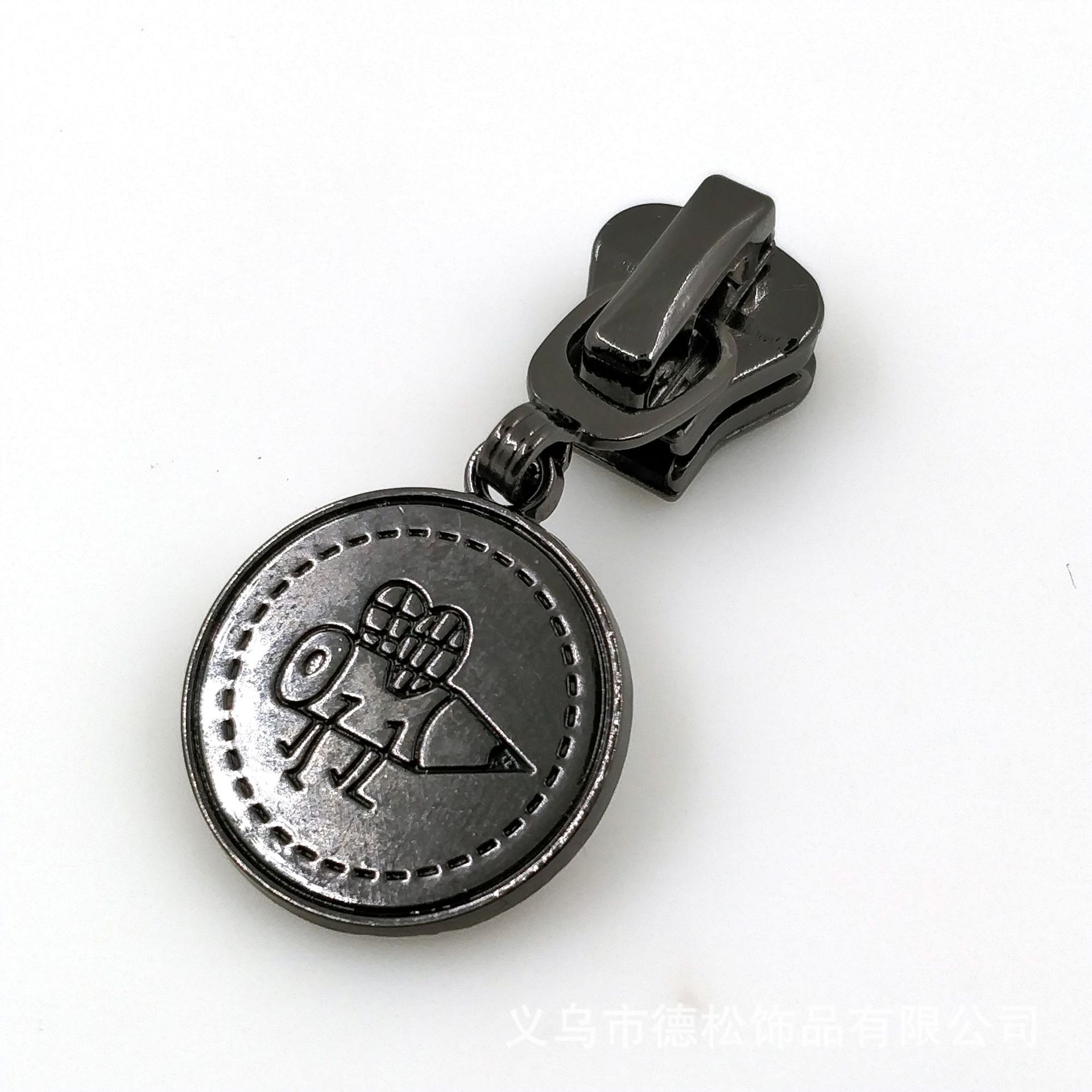 Professional zipper head manufacturer custom-molds cast metal logo puller heads and pull pieces with 5# and 7# train head zipper heads.