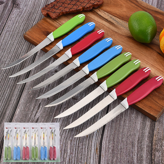 12PCs Single-Sided Suction Stainless Steel Beef Knife Dessert Knife Kitchen Tableware Steak Knife Pork Chop Knife