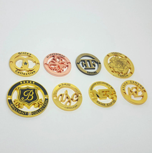 Custom metal products with manufacturer's logo, arc-shaped electroplated zinc alloy nameplates, metal custom with painted finish and drop-glue set with diamonds.