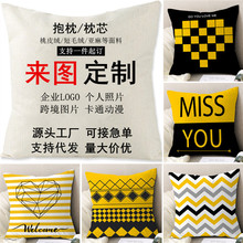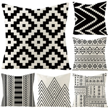 Black and White Nordic geometric linen pillow cover graphic customization modern style simple atmosphere throw pillowcase back seat cushion