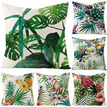 New household supplies tropical plant green leaf linen pillow cover custom ins Nordic style sofa cushion cover