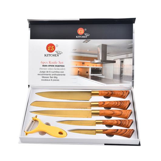 Factory Wholesale Yangjiang Stainless Steel Wooden Handle Titanium 6-Piece Set Household Knife Used in Kitchen Kitchen Knife Kit