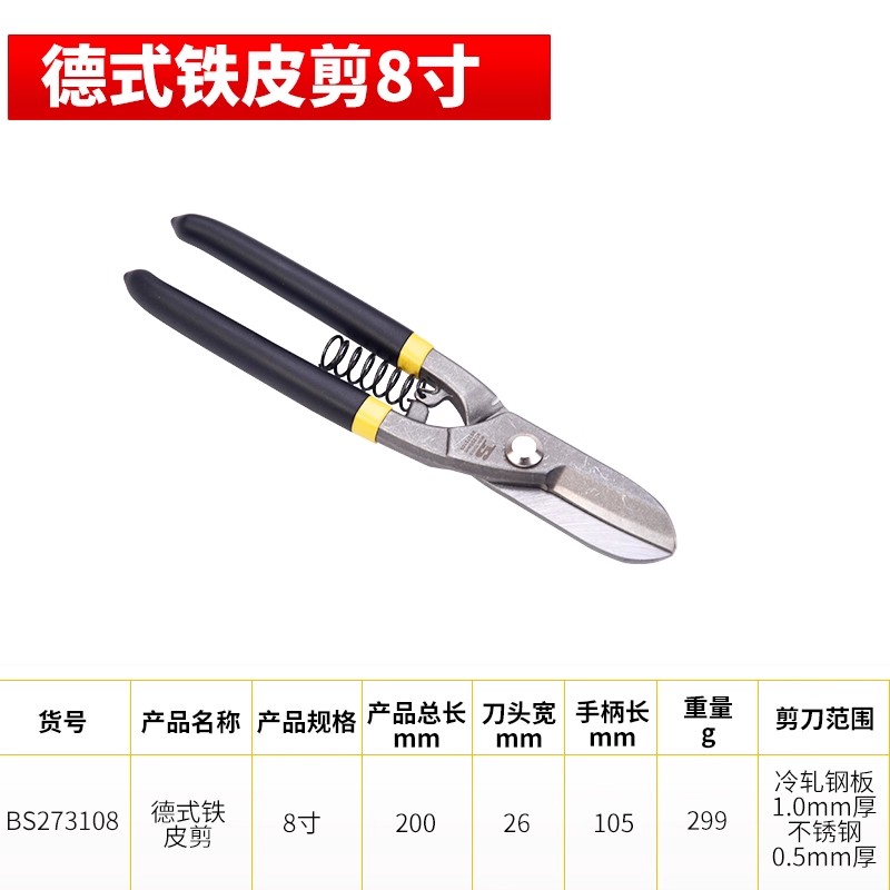 german style sheet metal shears 8-inch (bs273108)