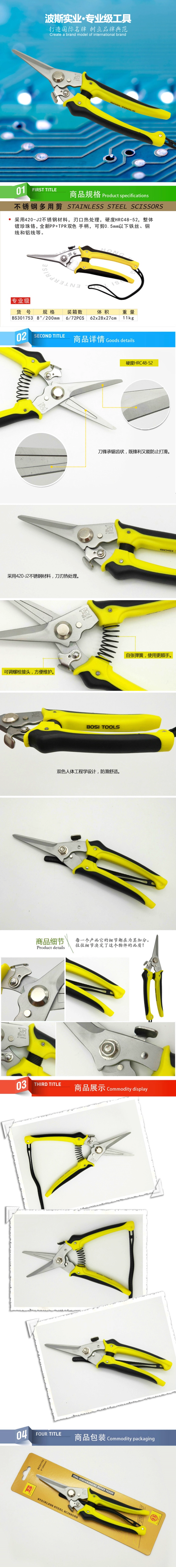 stainless steel multi-purpose shears 8-inch (bs301753)