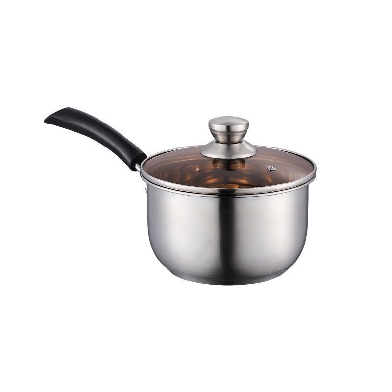 factory direct supply stainless steel milk pot thickened double bottom household soup double-ear soup pot porridge cooking noodles single handle food supplement pot