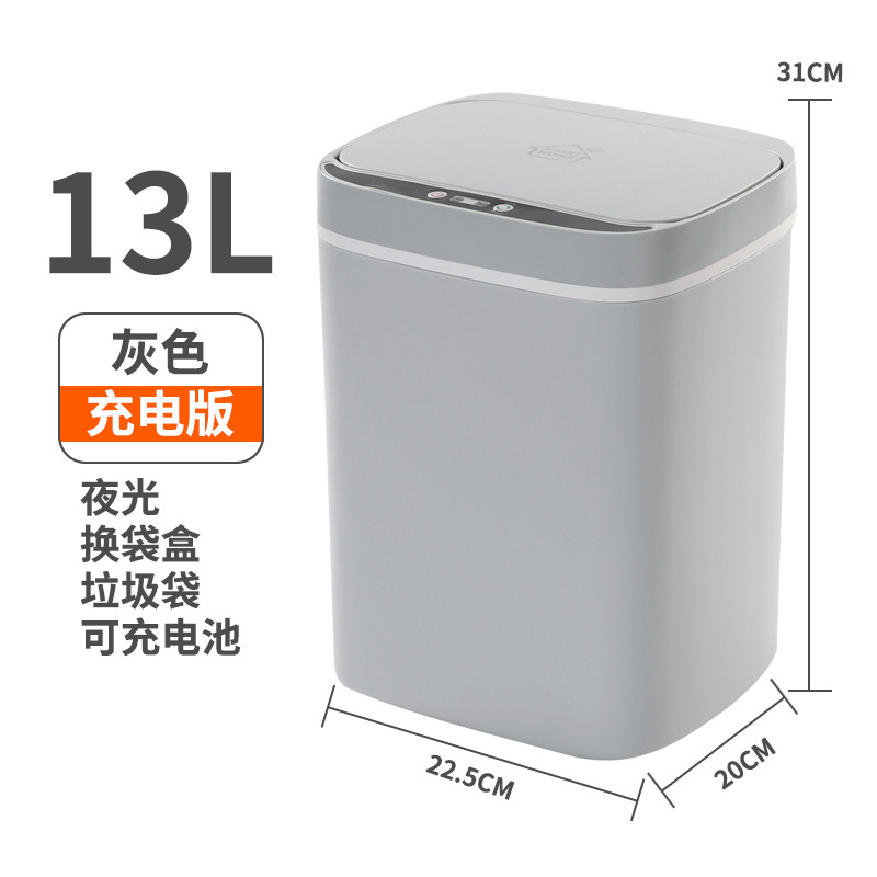 type b 13l gray [induction + vibration + button]: rechargeable version +5 rolls garbage bag