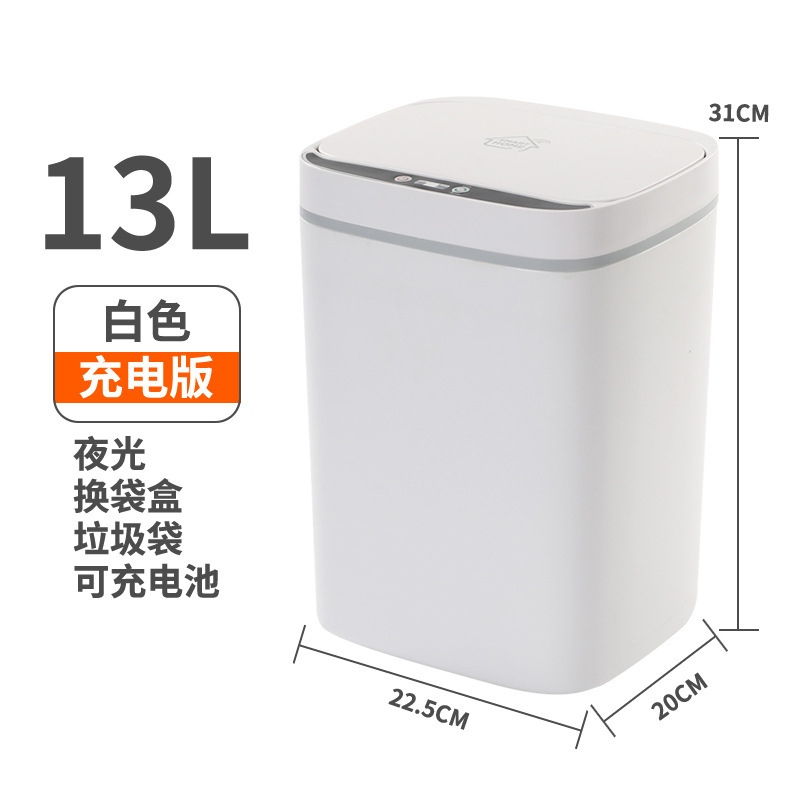 c model 15l white【 induction + vibration + button]: rechargeable version +5 rolls garbage bag