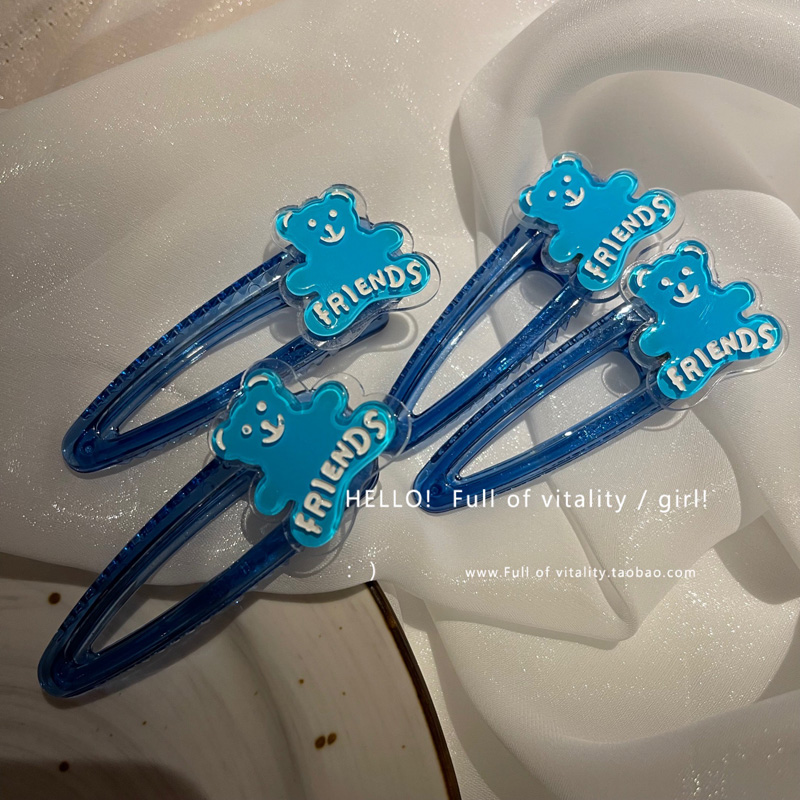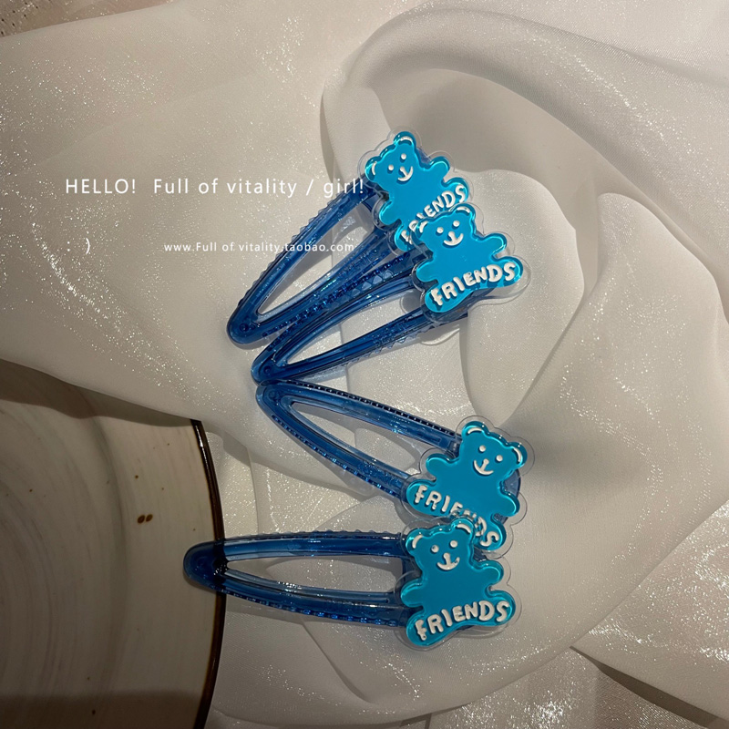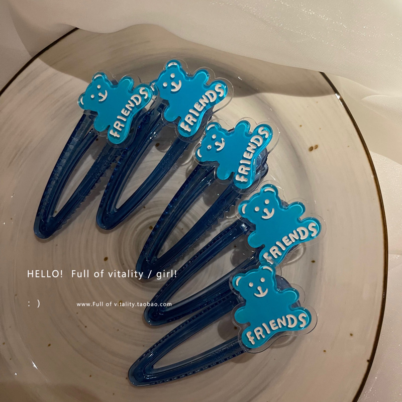 klein blue bear side clip korean style cute female bangs back brain broken barrettes acrylic duckbill clip female 中文版