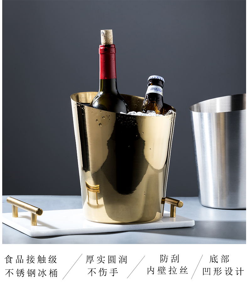 New Oblique Stainless Steel Ice Bucket European-Style Incense Ice Bucket Bar KTV Ice Bucket Home Beer Barrel Decorative Ornaments 中文版