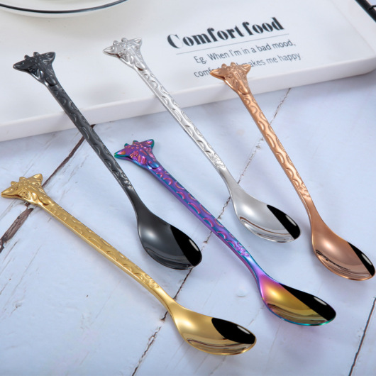 304 Stainless Steel Spoon Fork Cartoon Giraffe Coffee Spoon Dessert Cake Fruit Small Spoon