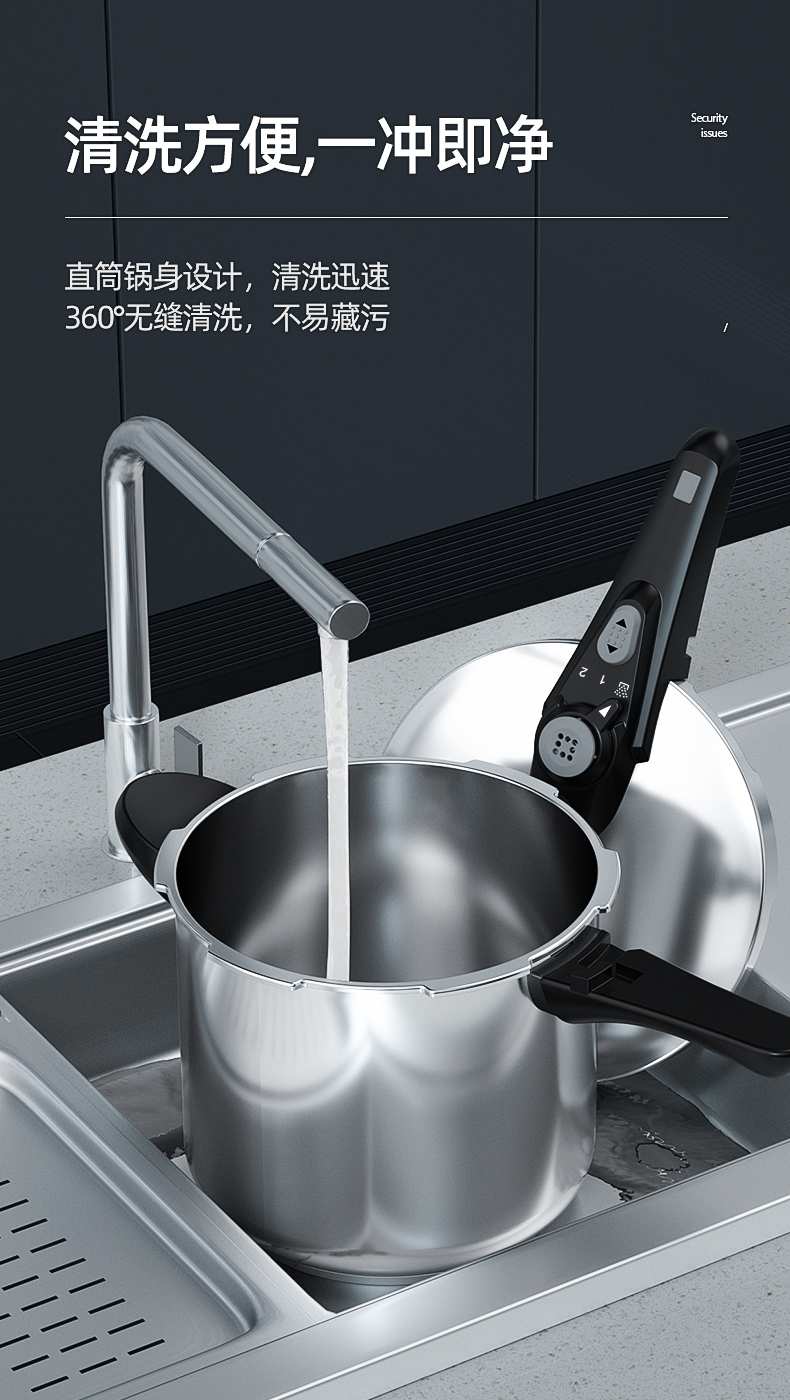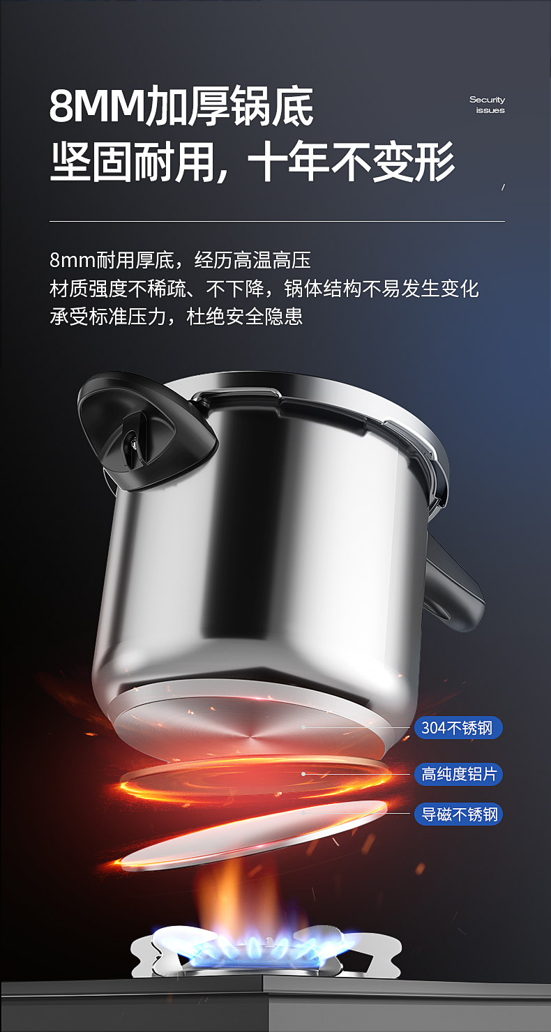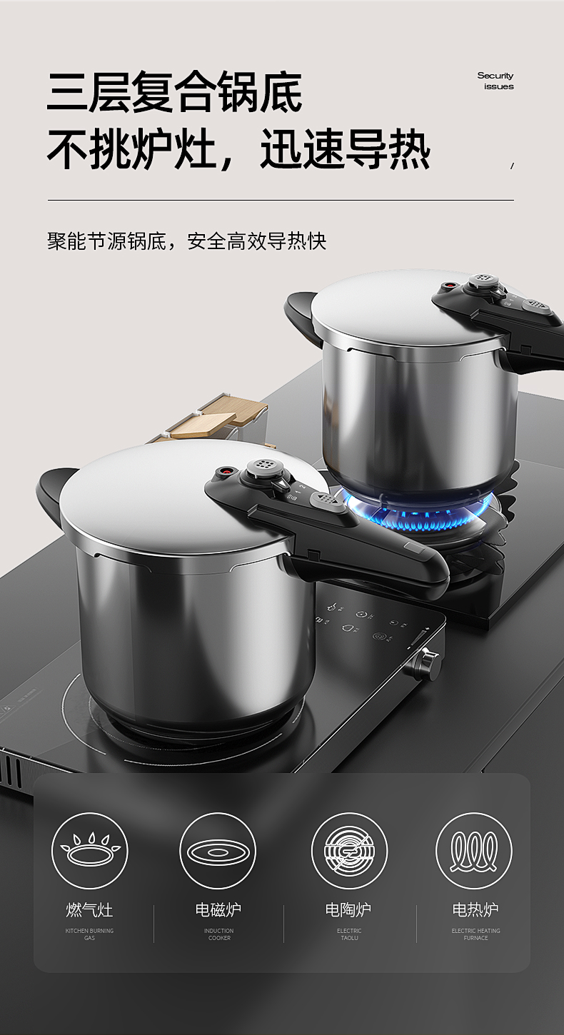 German 304 Stainless Steel Pressure Cooker Household Gas Induction Cooker Universal Explosion-Proof Mini Small Pressure Cooker Large Capacity 中文版