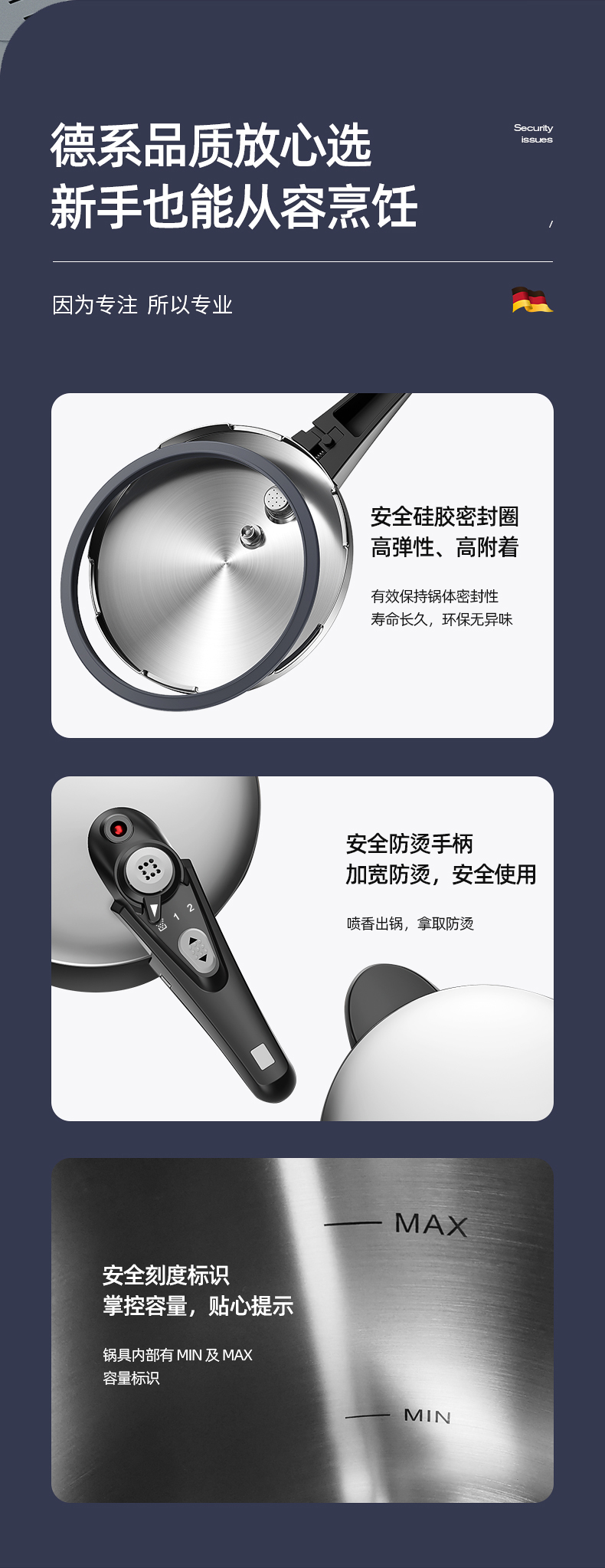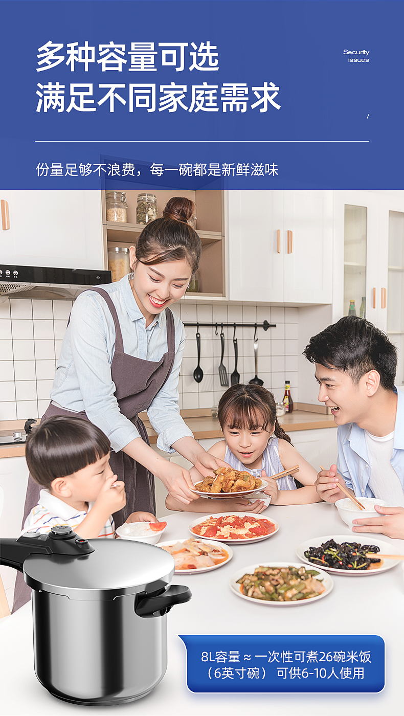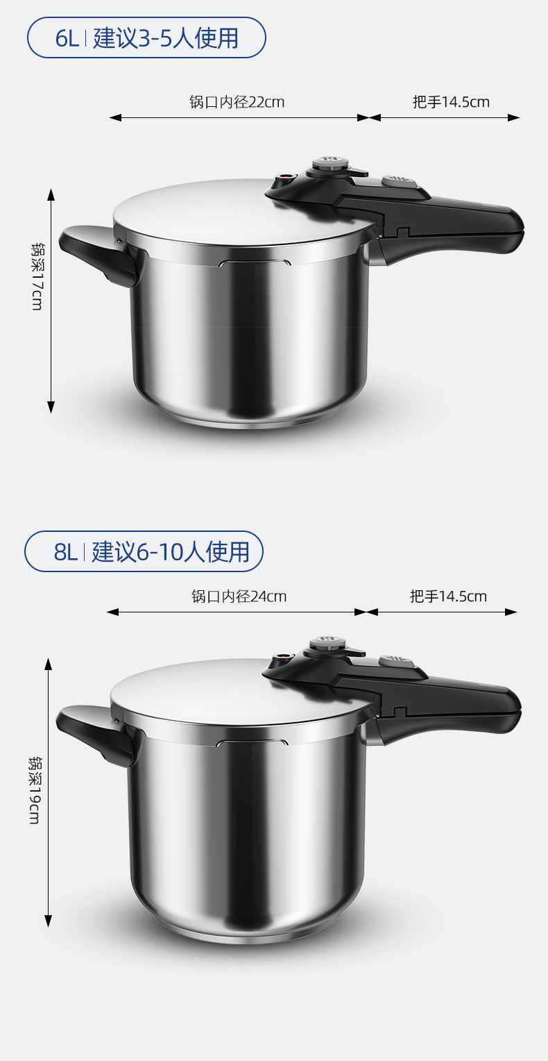 German 304 Stainless Steel Pressure Cooker Household Gas Induction Cooker Universal Explosion-Proof Mini Small Pressure Cooker Large Capacity 中文版