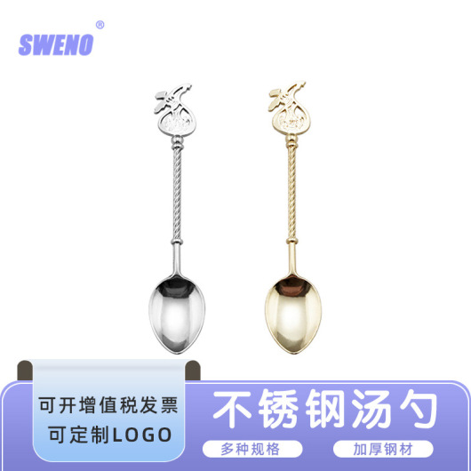 Stainless Steel Soup Meal Spoon Western Tableware Craft Gift 4 Three-Dimensional Spoon Kit Solid Color Creative Coffee Spoon