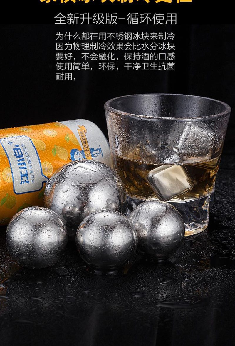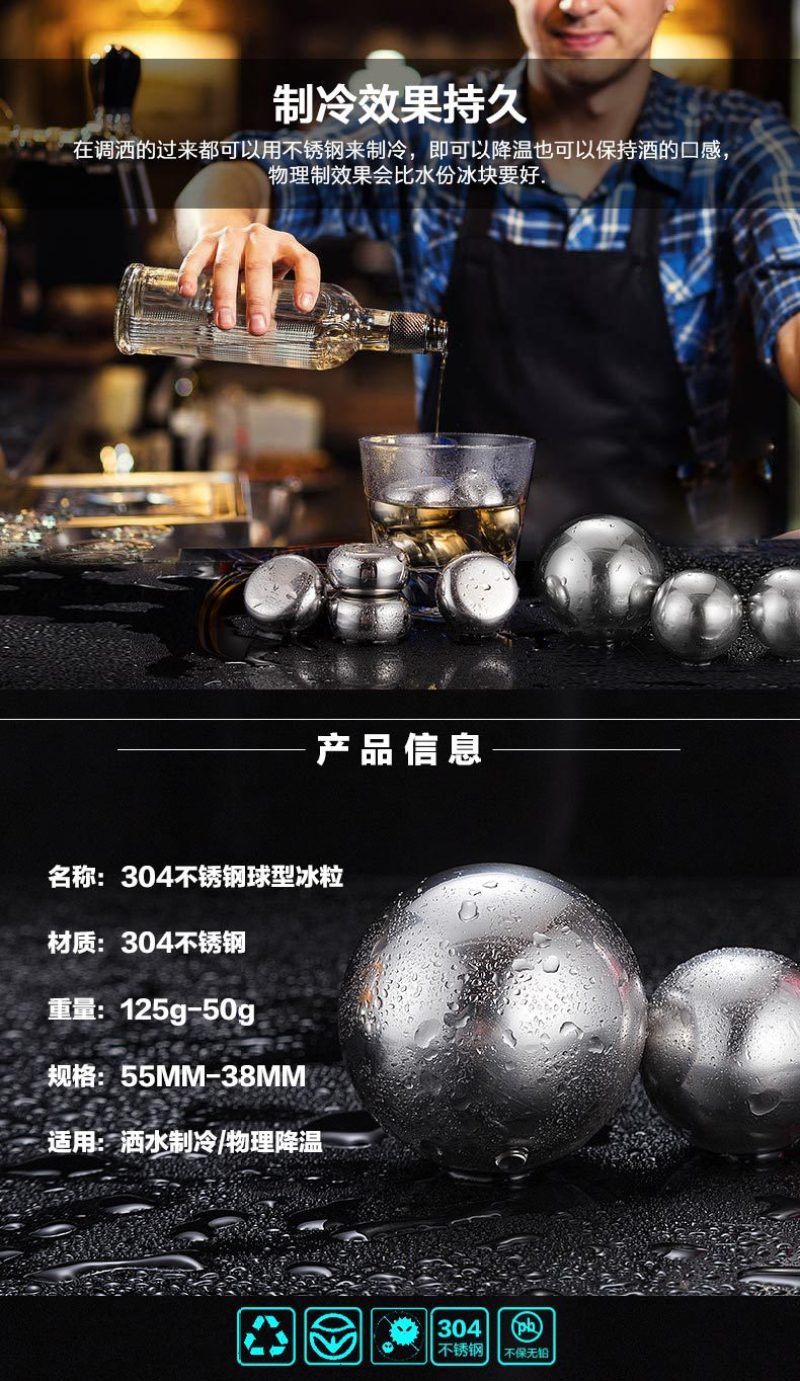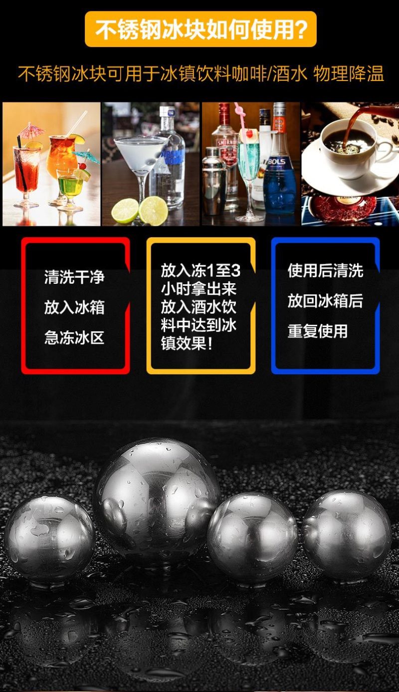 Stainless Steel round Ice Cube 304 Steel Ball Ice Cube Metal Circle Whisky Stone Sprinkling Wholesale Factory Direct Sales 中文版