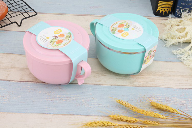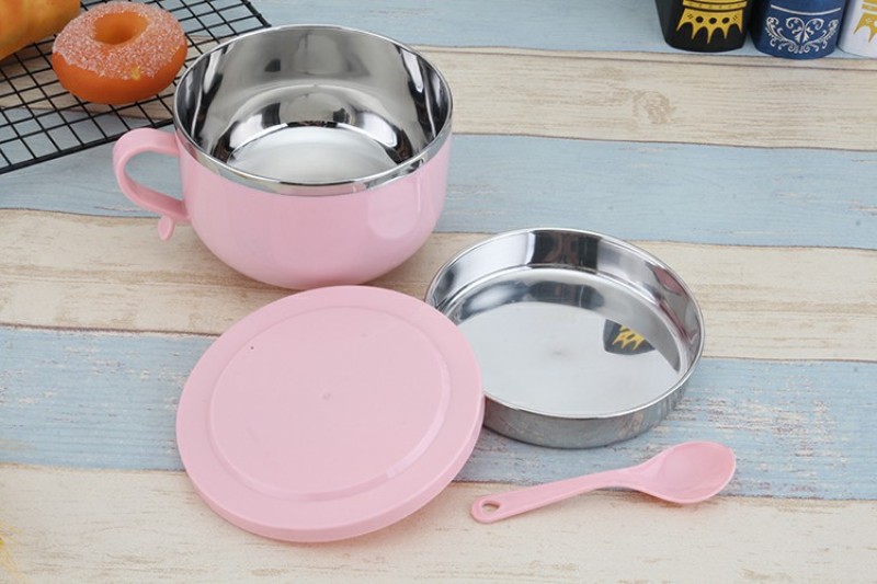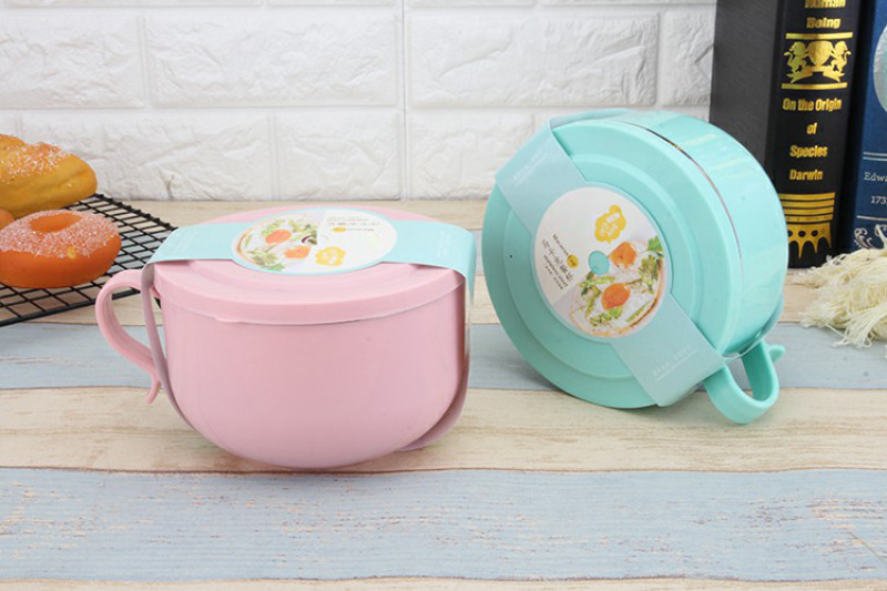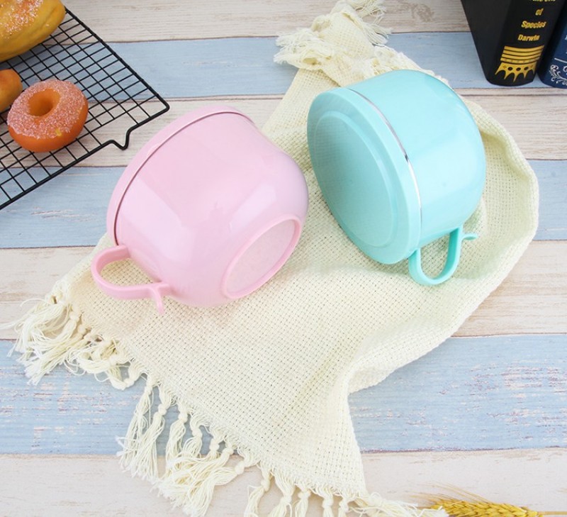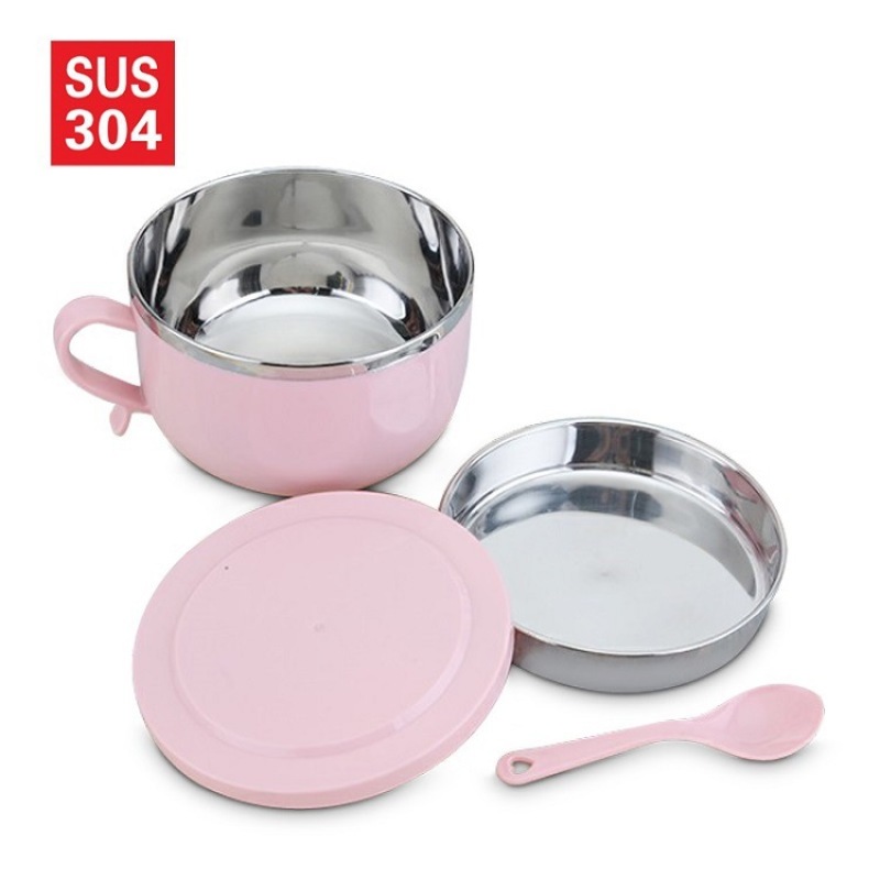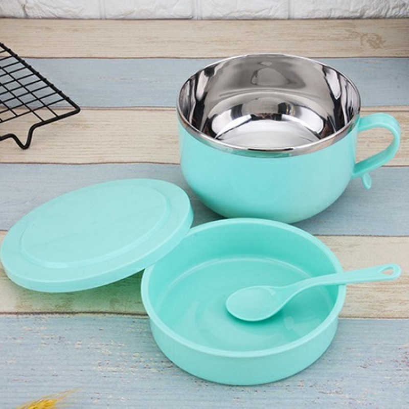 304 Stainless Steel Snack Cup Anti-Scald Instant Noodle Bowl Nordic Color Lunch Box Double-Layer Student Adult Canteen Lunch Box
