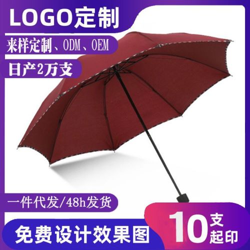 Umbrella 21-Inch Three-Fold Plaid Edge Umbrella Sun Umbrella 8-Bone Business Umbrella Advertising Umbrella Custom Logo