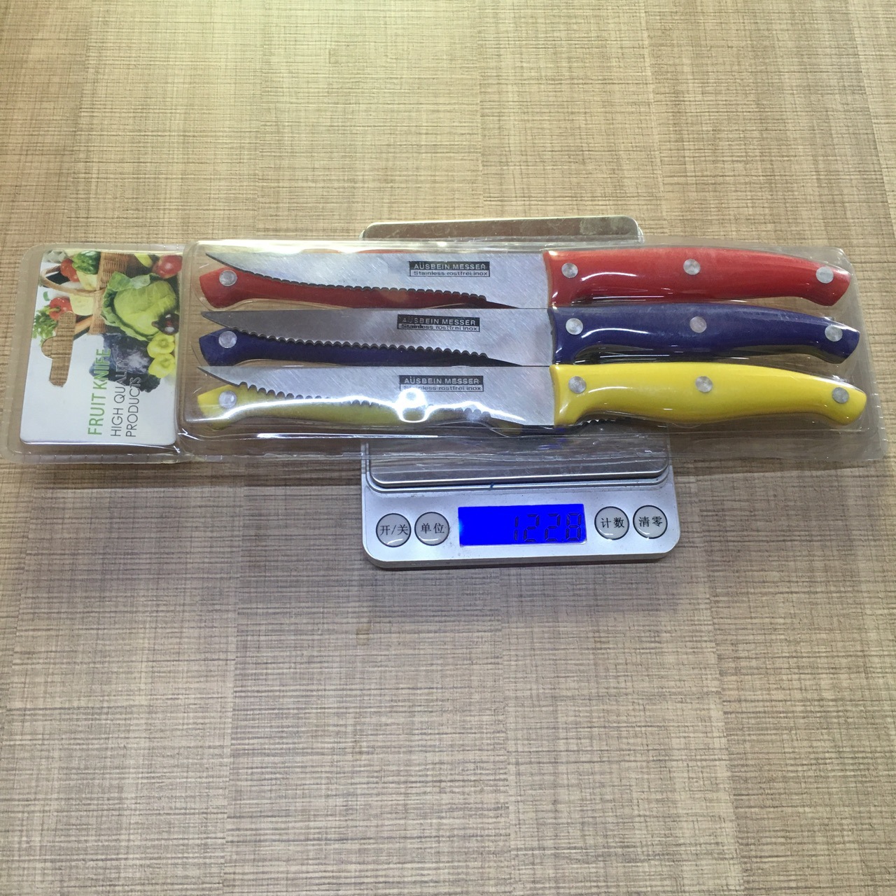 Steak Knife Universal Knife Fruit Knife 6PCs Double-Sided Suction Card Packaging Three Colors
