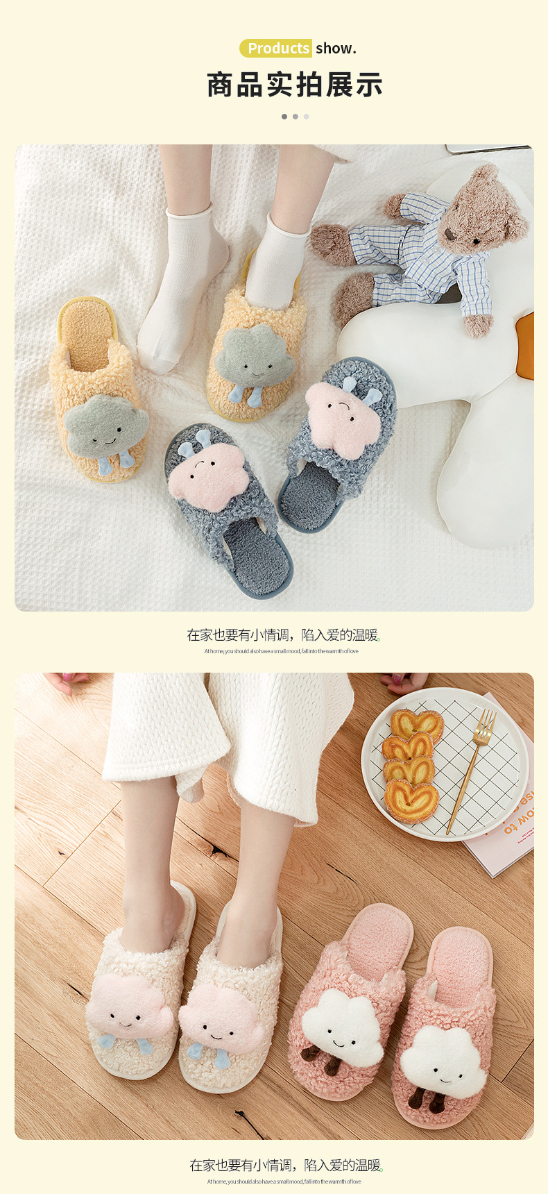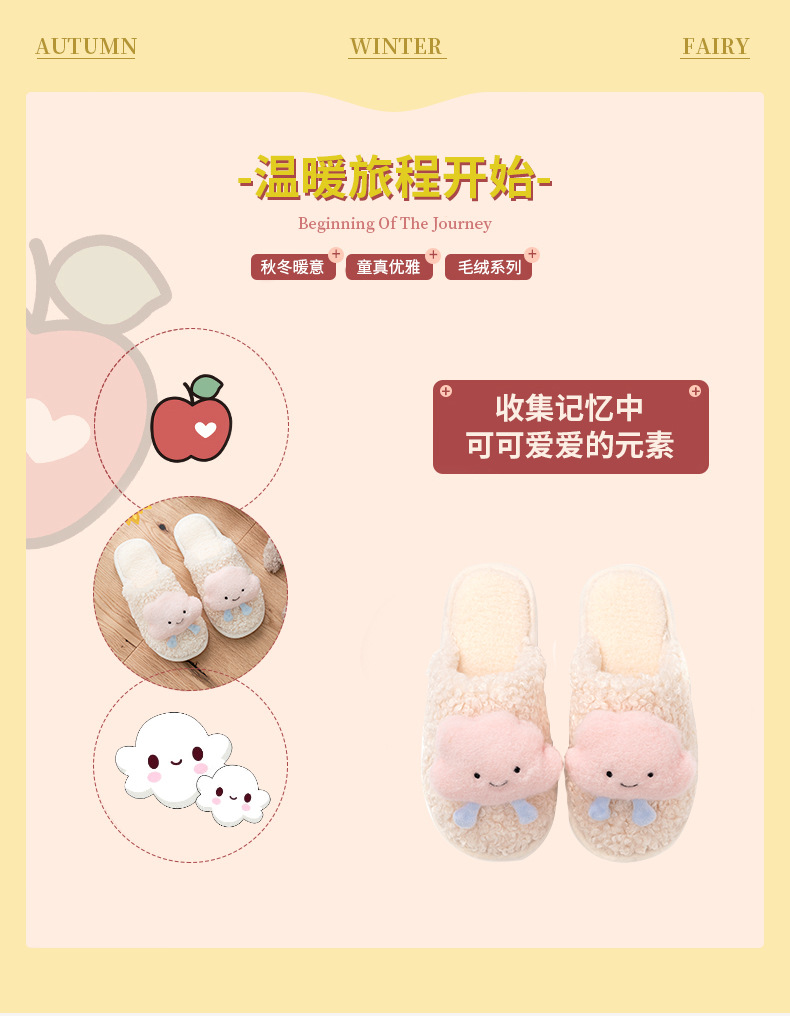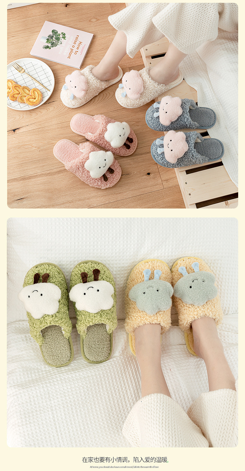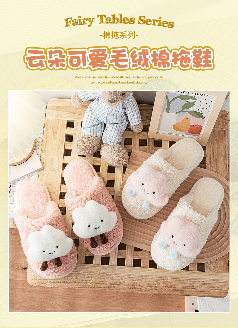 autumn and winter new girl cloud cute plush cotton slippers fresh furnishings floor thickened wrapping cotton shoes foreign trade 中文版