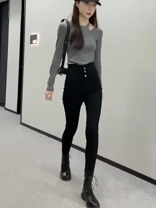 High Waist Belly Contracting Black Leggings Women's Outer Wear Magic Slimming Skinny High Elastic Tight Pencil Pants 中文版