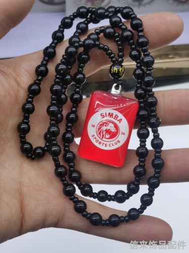 Rectangular pendant with team logo pattern, necklace, hot sale in Africa, crystal glass with adhesive, black beaded chain