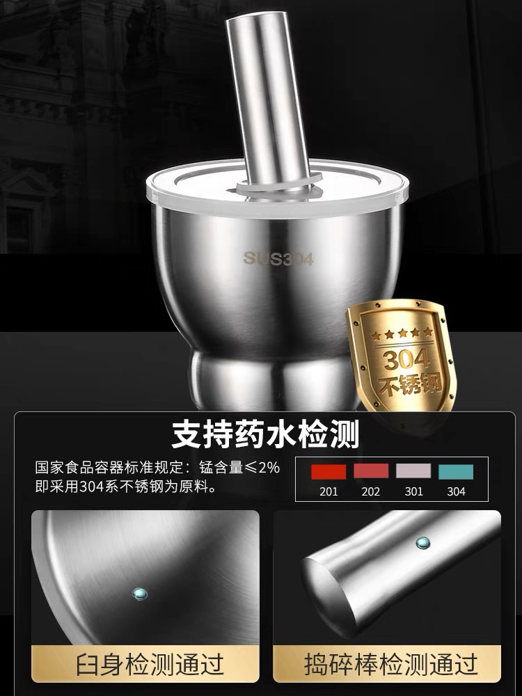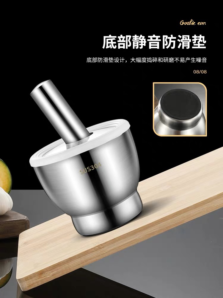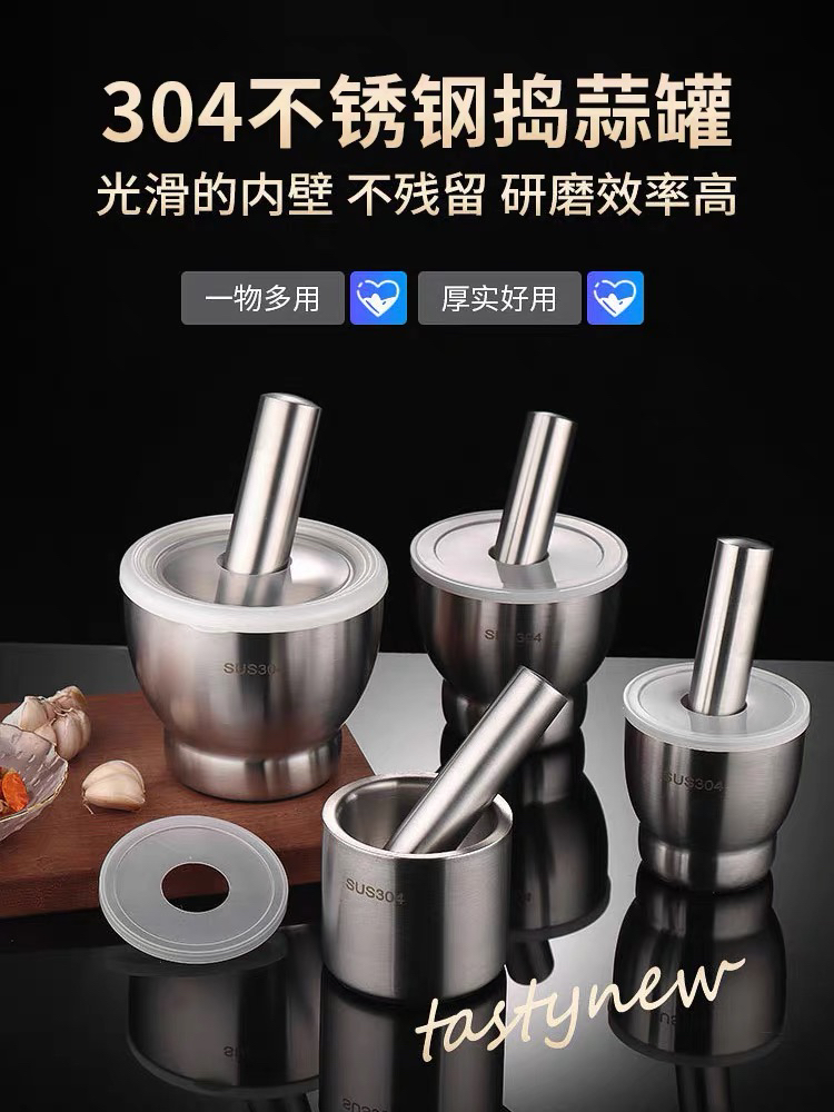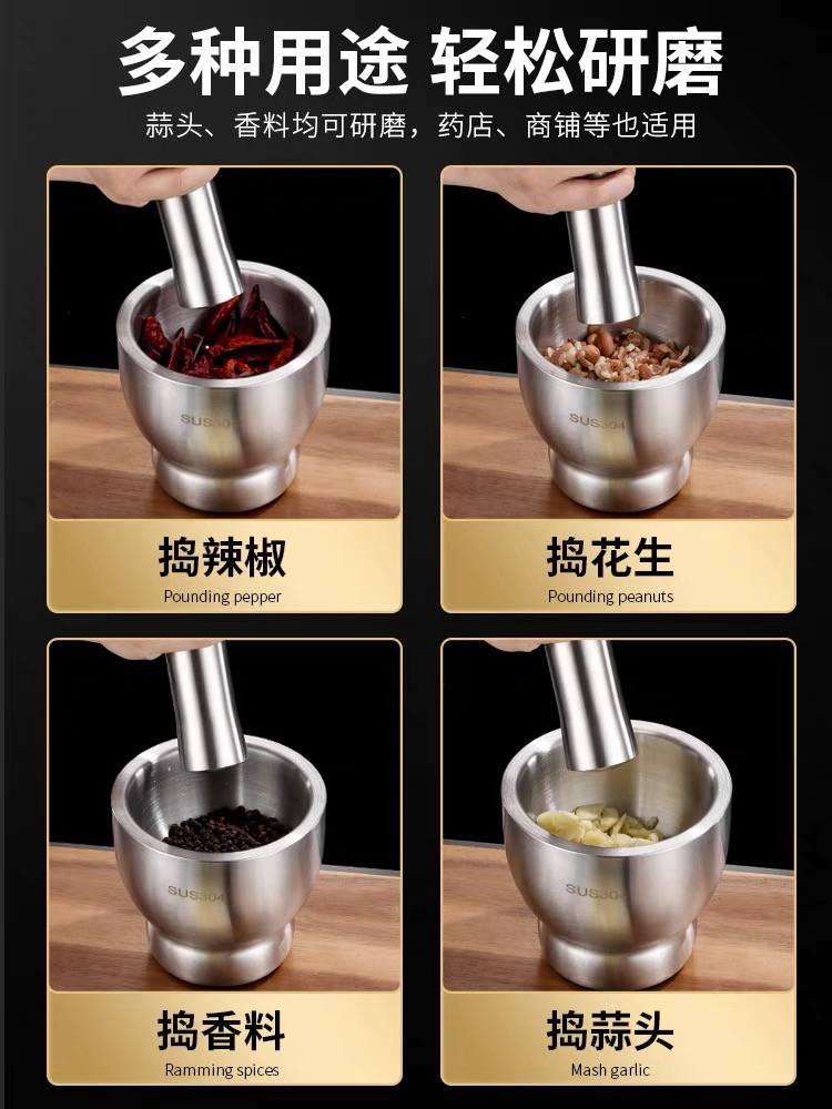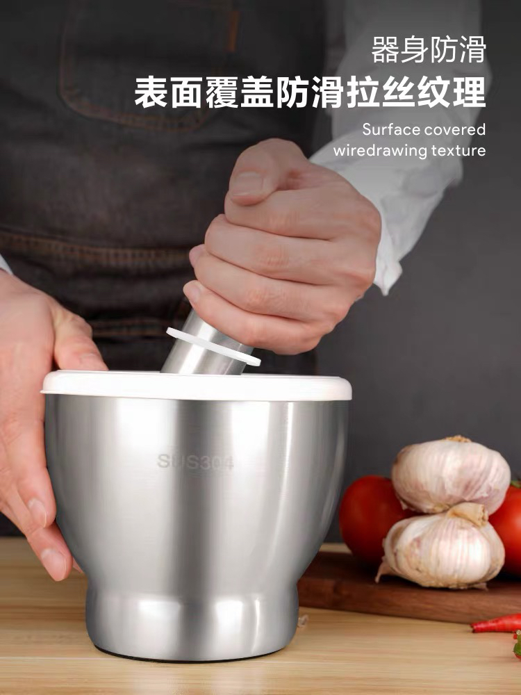 Stainless Steel Garlic Mortar Mash can Stone Mortar Garlic Grinder Grinder Mortar Household Mortar Tamping Bowl Garlic Mortar 中文版