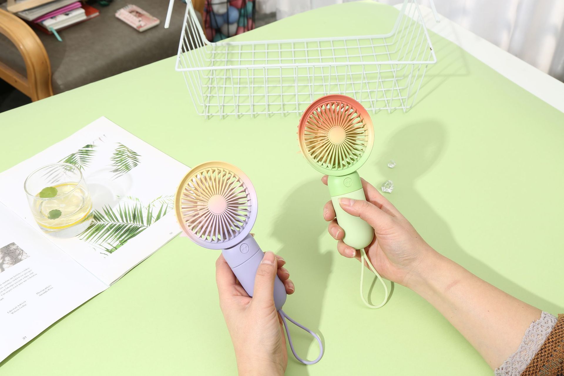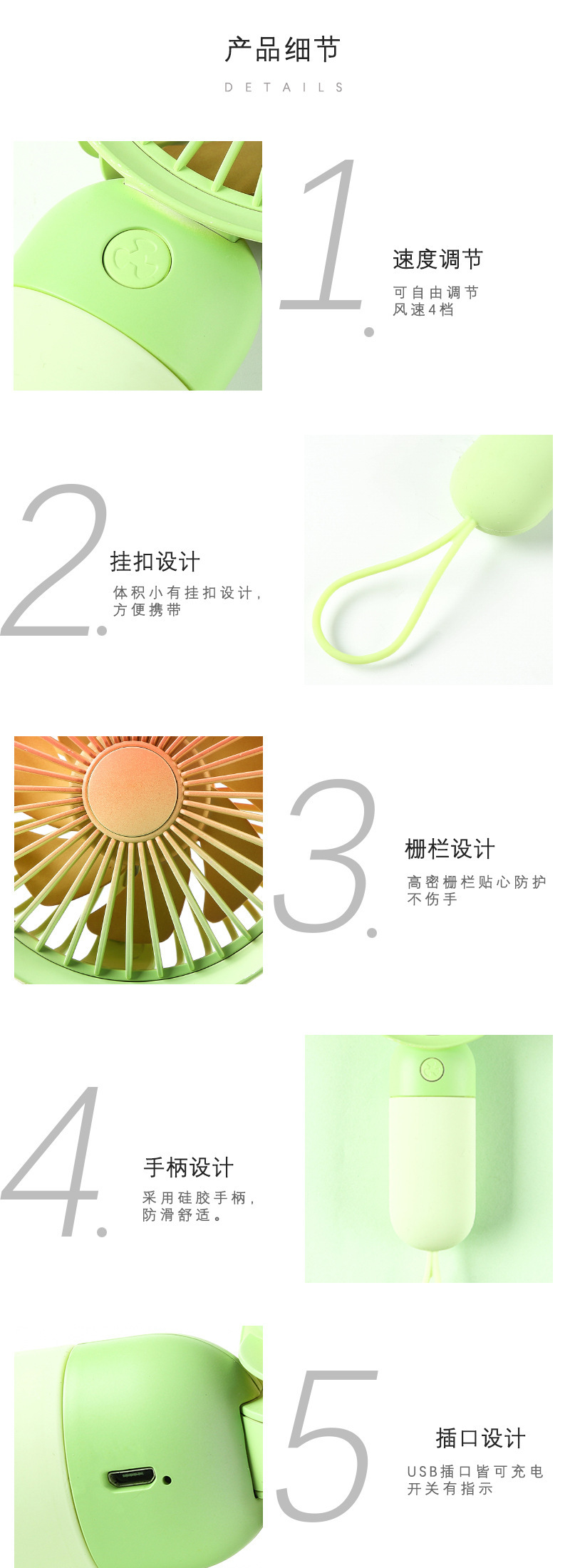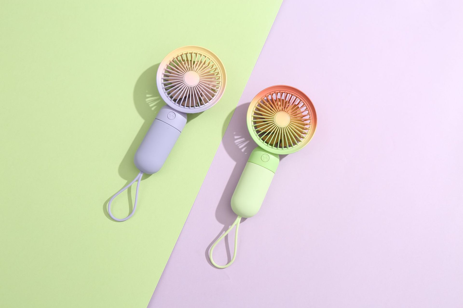 usb rainbow gradient summer portable small handheld fan portable lanyard cute student dormitory charging mute 中文版