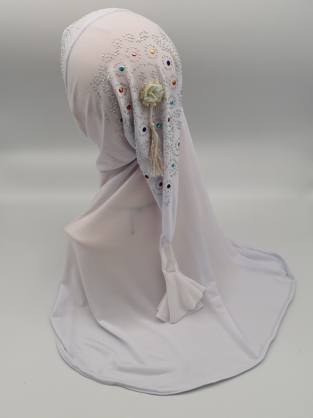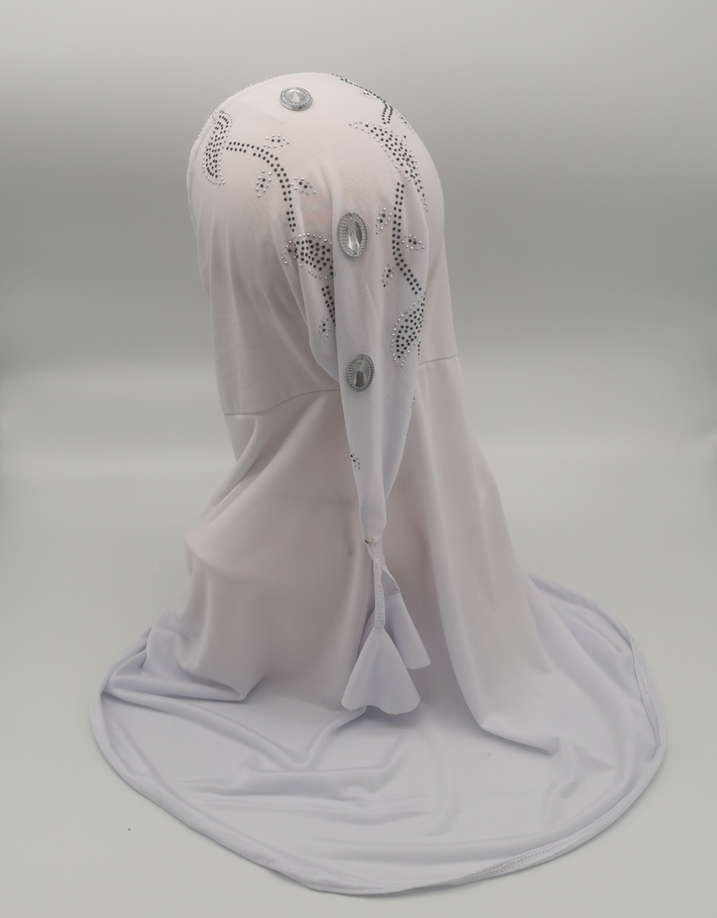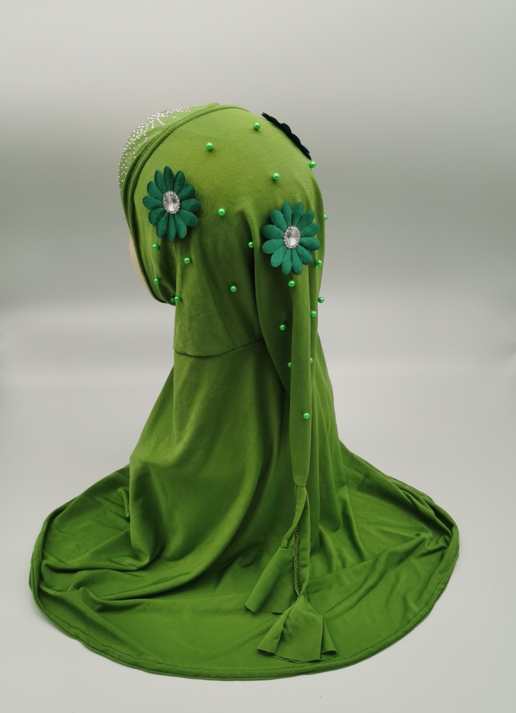 Foreign Trade Hot Selling Ice Silk Fabric Hot Drilling Applique Piece National Style Tail Setting Pearl Cap Headscarf Cap