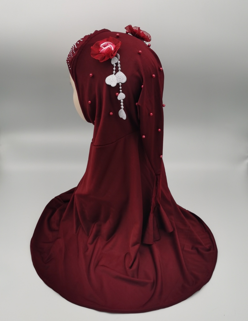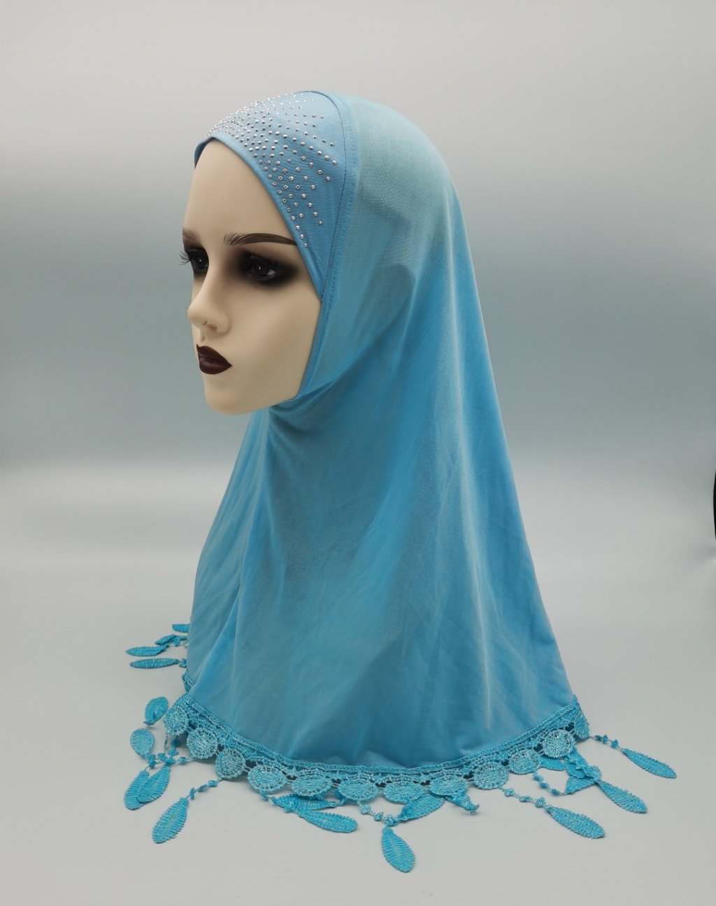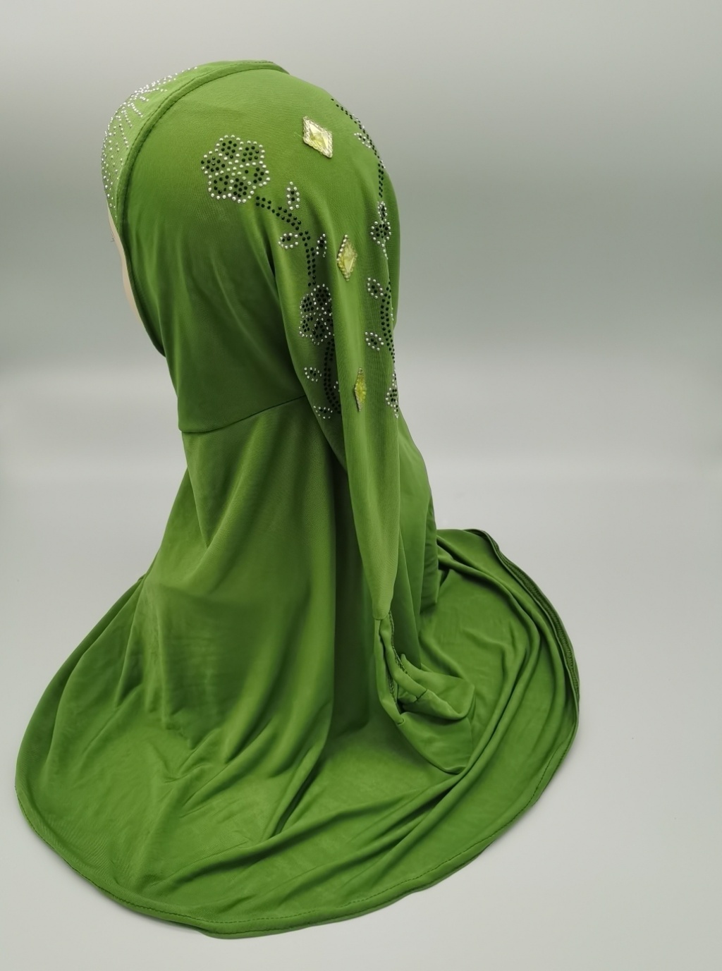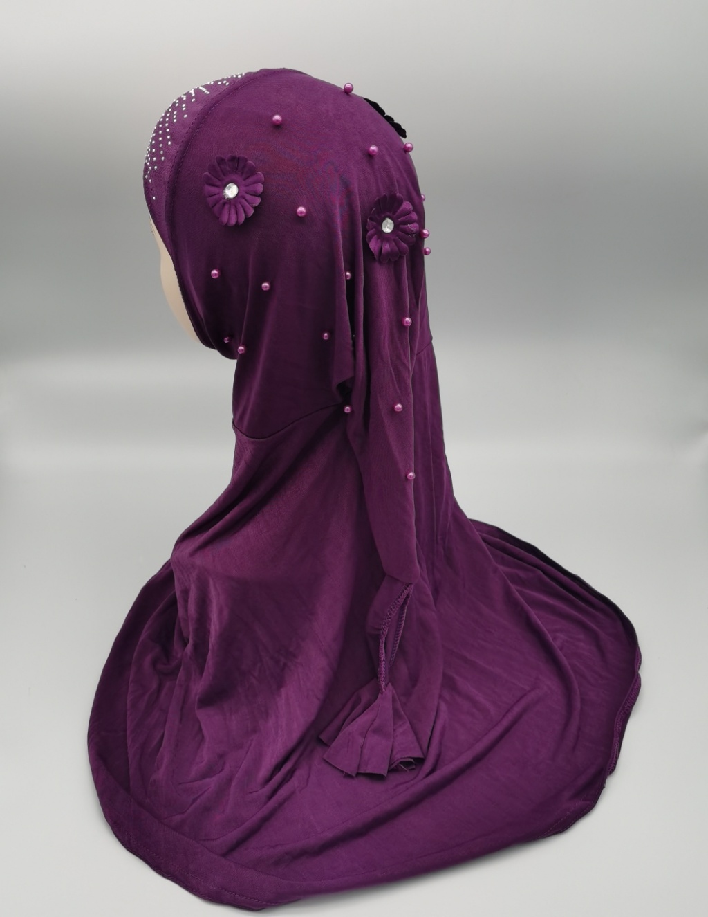 Foreign Trade Hot Selling Ice Silk Fabric Hot Drilling Applique Piece National Style Tail Setting Pearl Cap Headscarf Cap