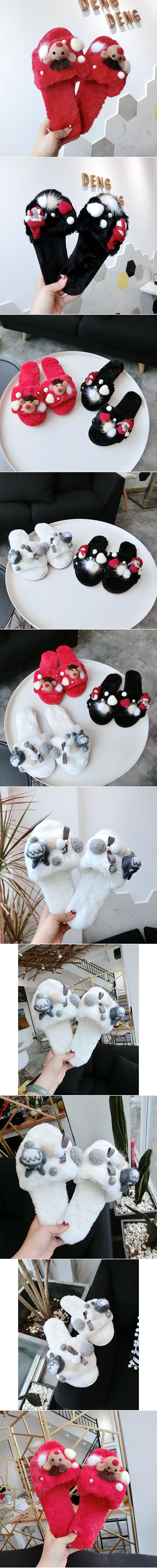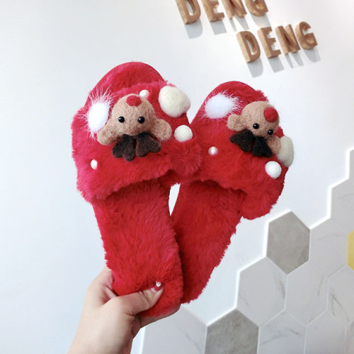 korean new christmas snowman deer cartoon open toe warm flip-flops lovely plush non-slip thick cotton slippers