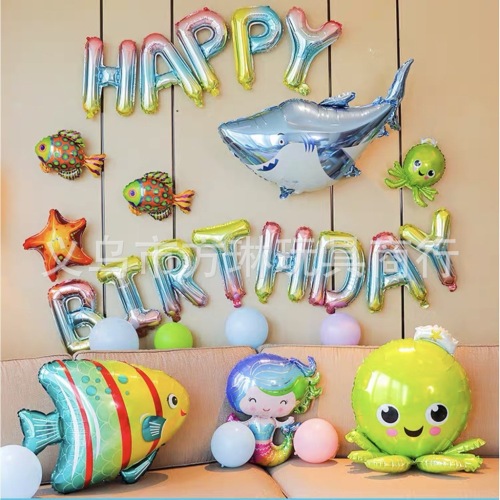 【Name】: Shark Octopus Starfish Tropical Fish Aluminum Foil Balloon Ocean Animal Theme Party Decorative Balloon