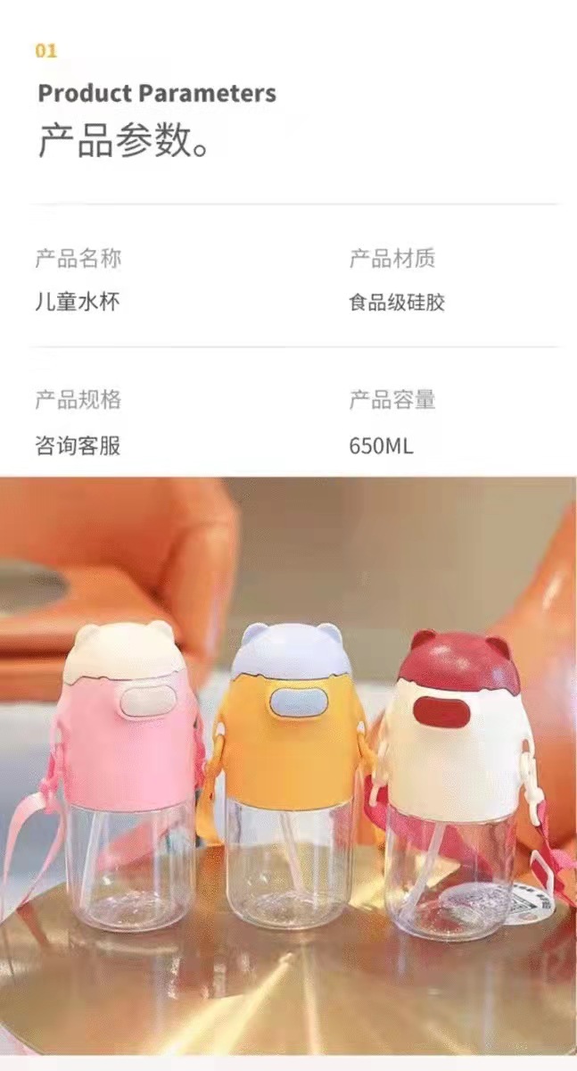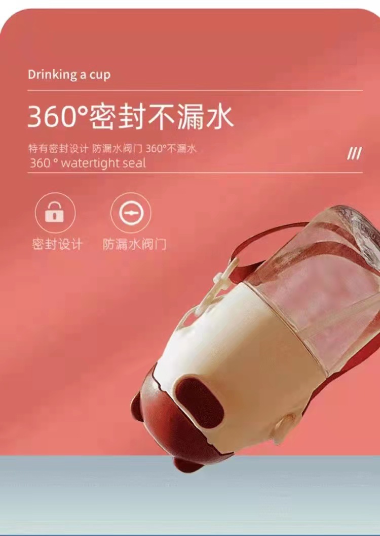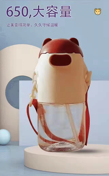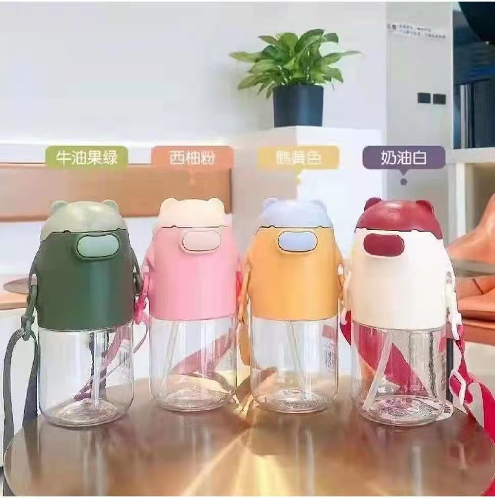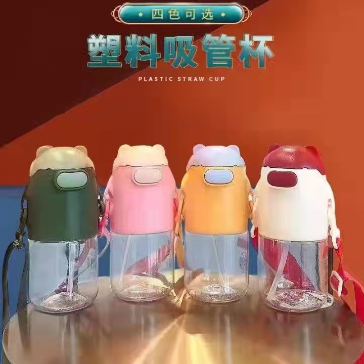 cartoon cute bear plastic straw cup cute transparent portable korean-style large-capacity drop-resistant plastic cup students 中文版