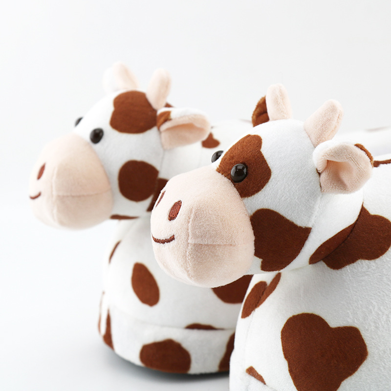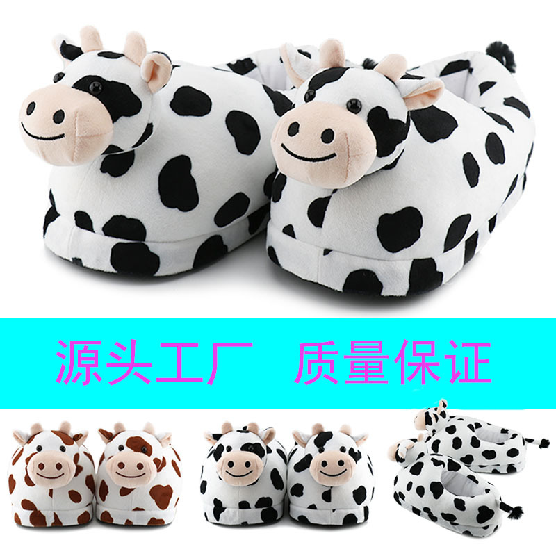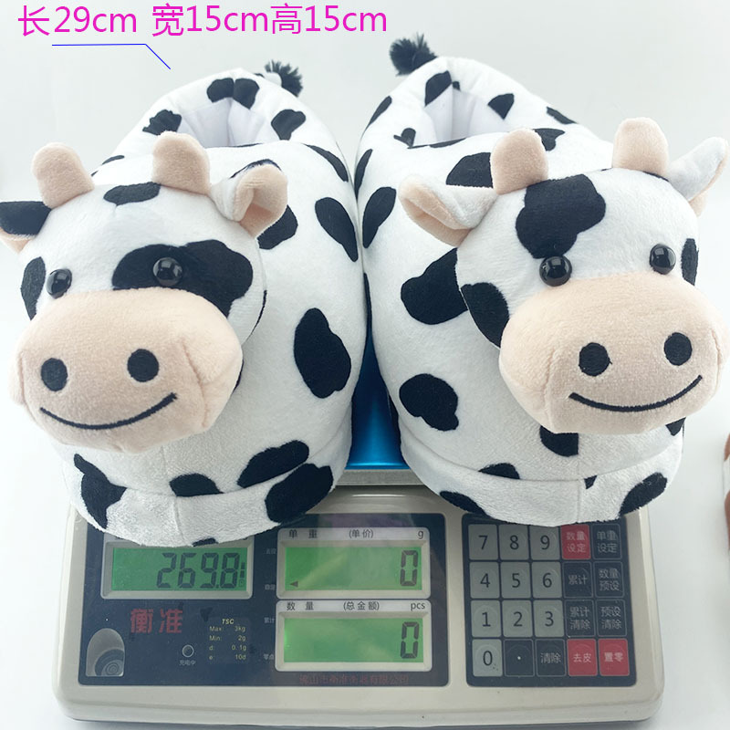 cartoon plush cow cotton slippers autumn and winter velvet warm cotton shoes men's and women's handbags with cute home european and american floor shoes 中文版