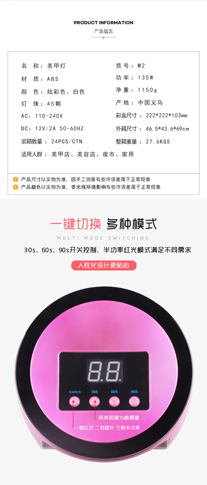 Cross-Border New Arrival M2 Colorful Hot Lamp Portable Intelligent Induction Nail Phototherapy Machine High Power Uv Dryer 中文版