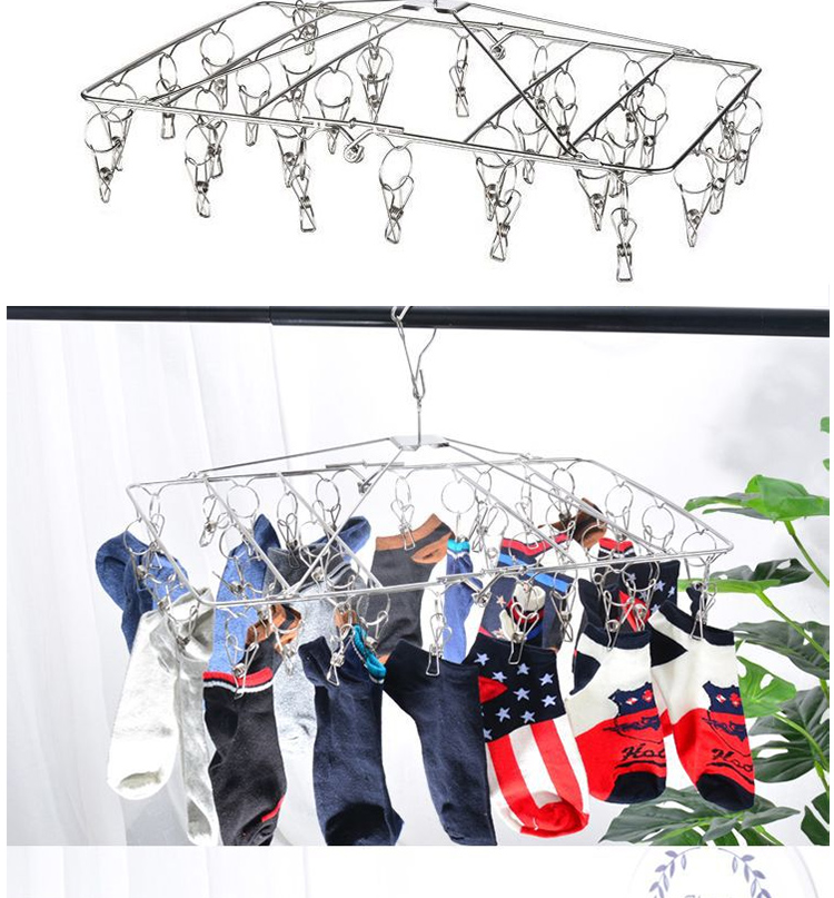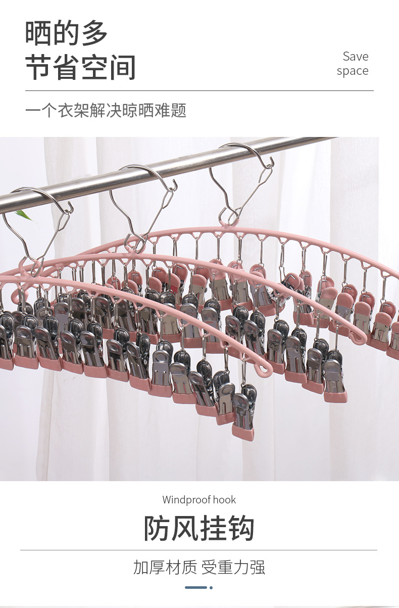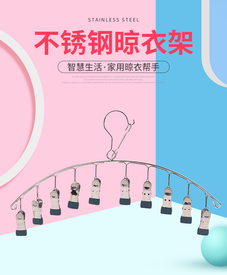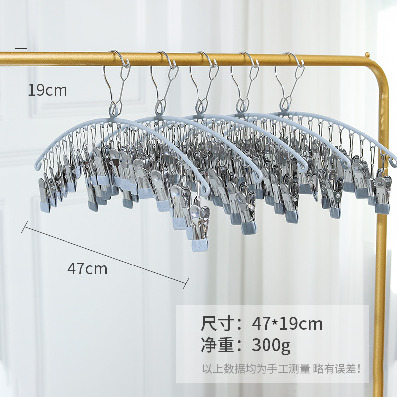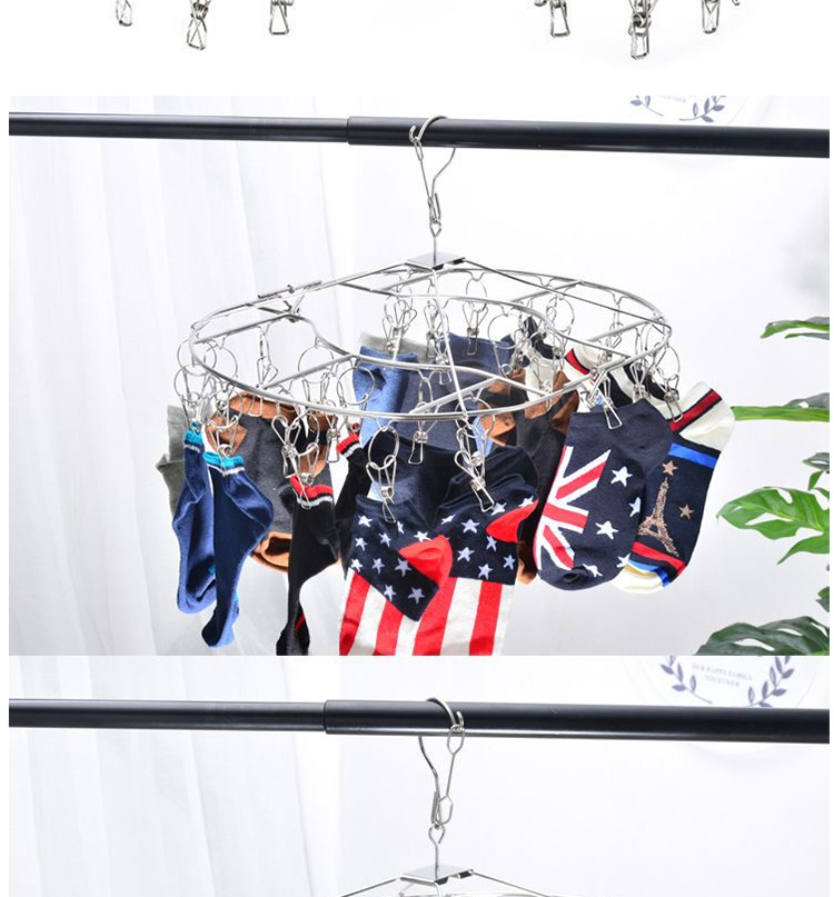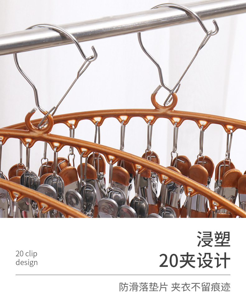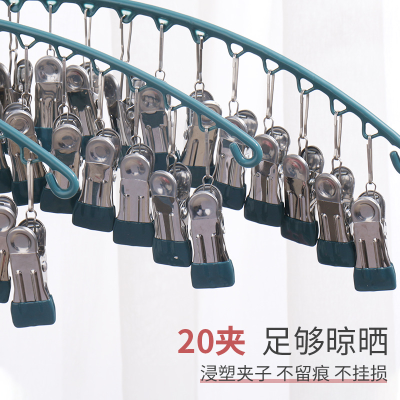 stainless steel clothes hanger multi-clip sock clothes function clip hook round drying cool household underwear artifact 中文版