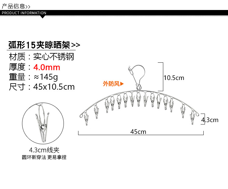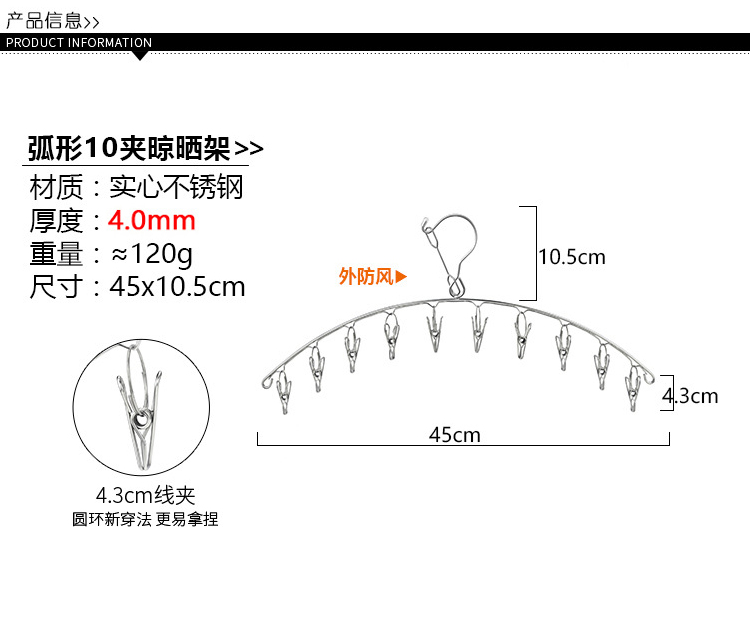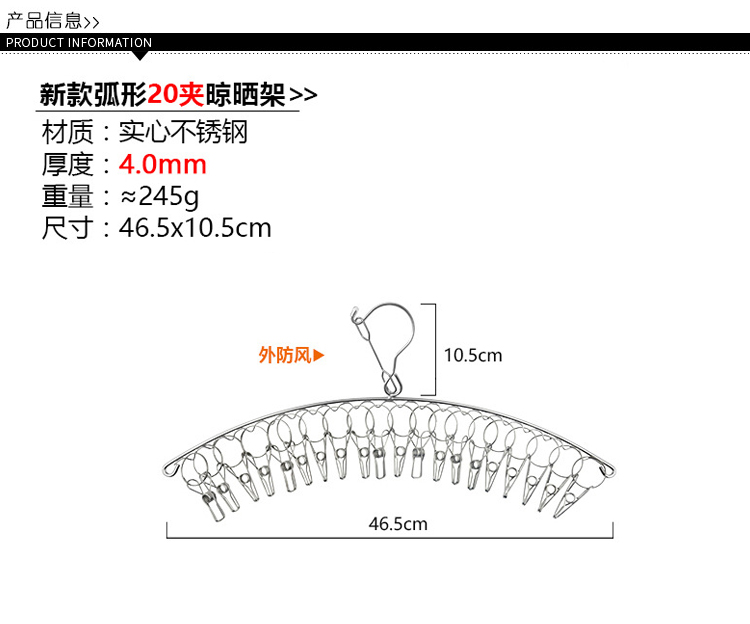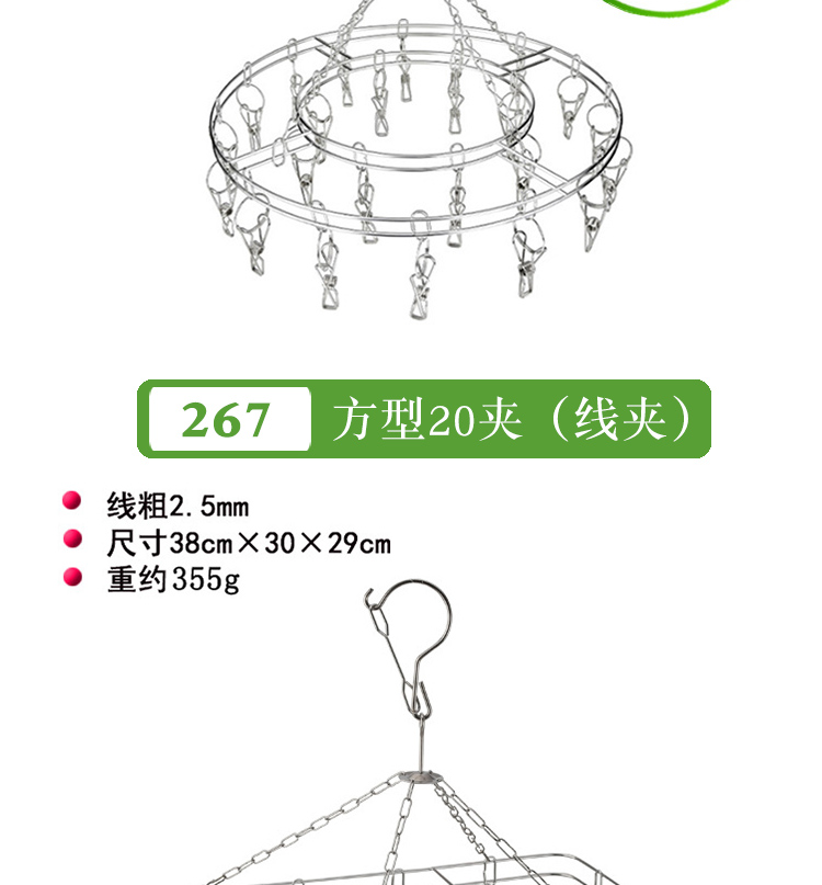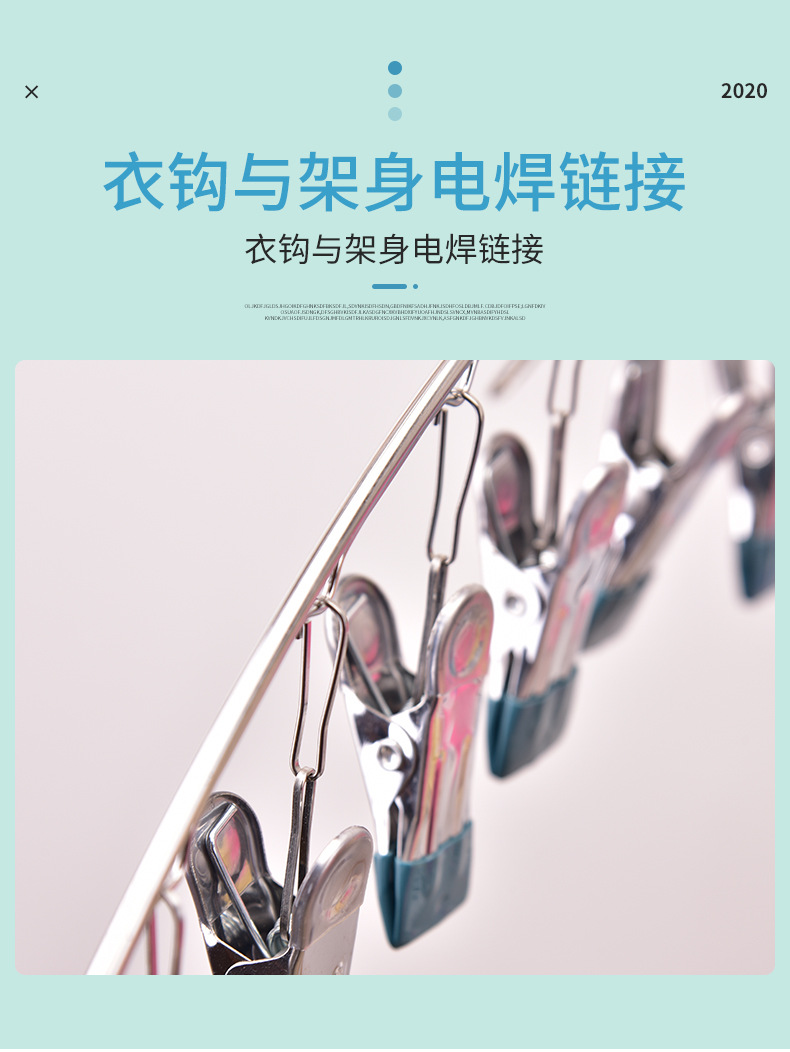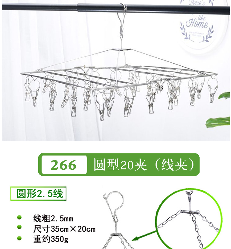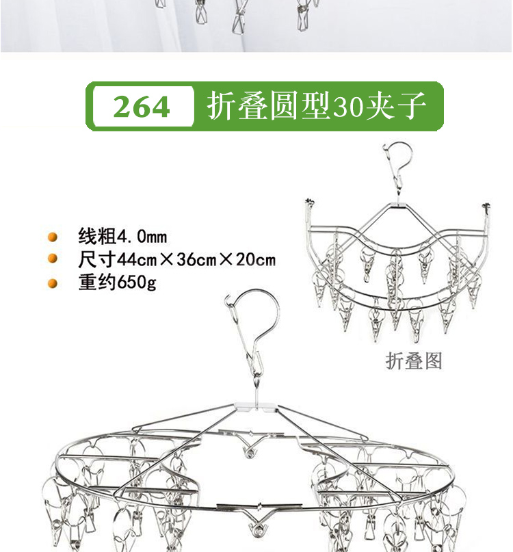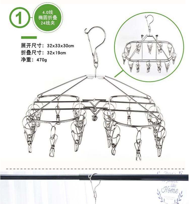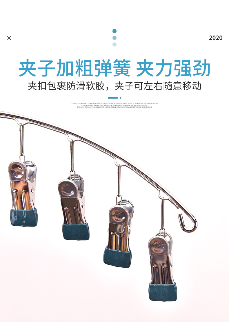 stainless steel clothes hanger multi-clip sock clothes function clip hook round drying cool household underwear artifact 中文版