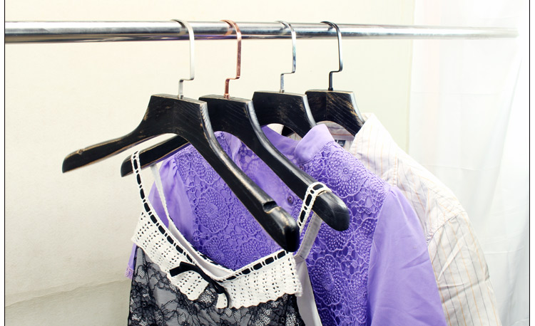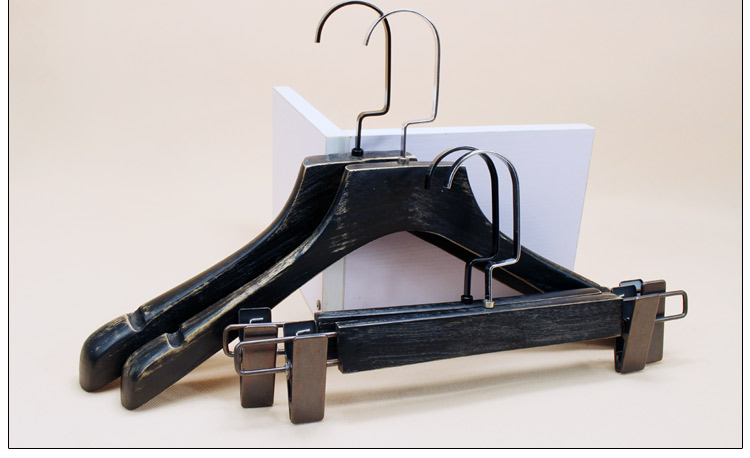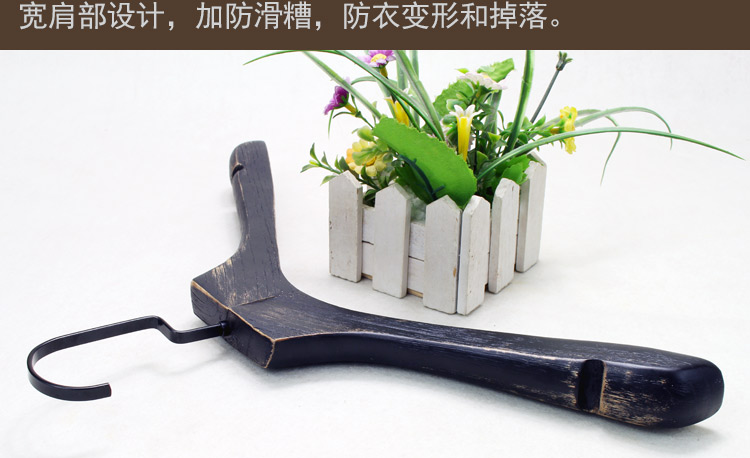 women's clothing store brushed black washed black solid wood hanger vintage old wood hanger wooden hanger clothes store 中文版
