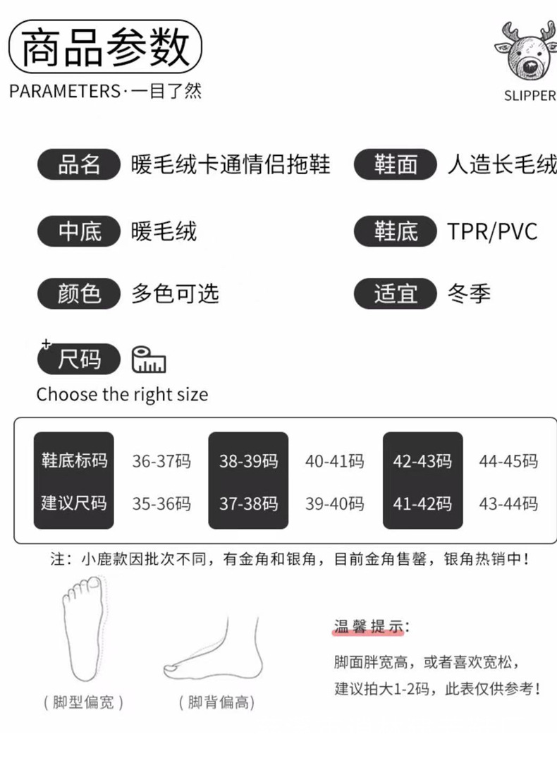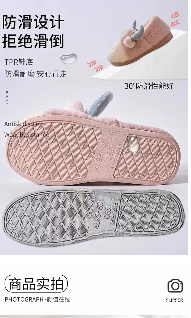 horn cartoon cotton slippers women's cute bag heel plush indoor and outdoor autumn and winter warm woolen slipper men's and women's side seam korean style 中文版